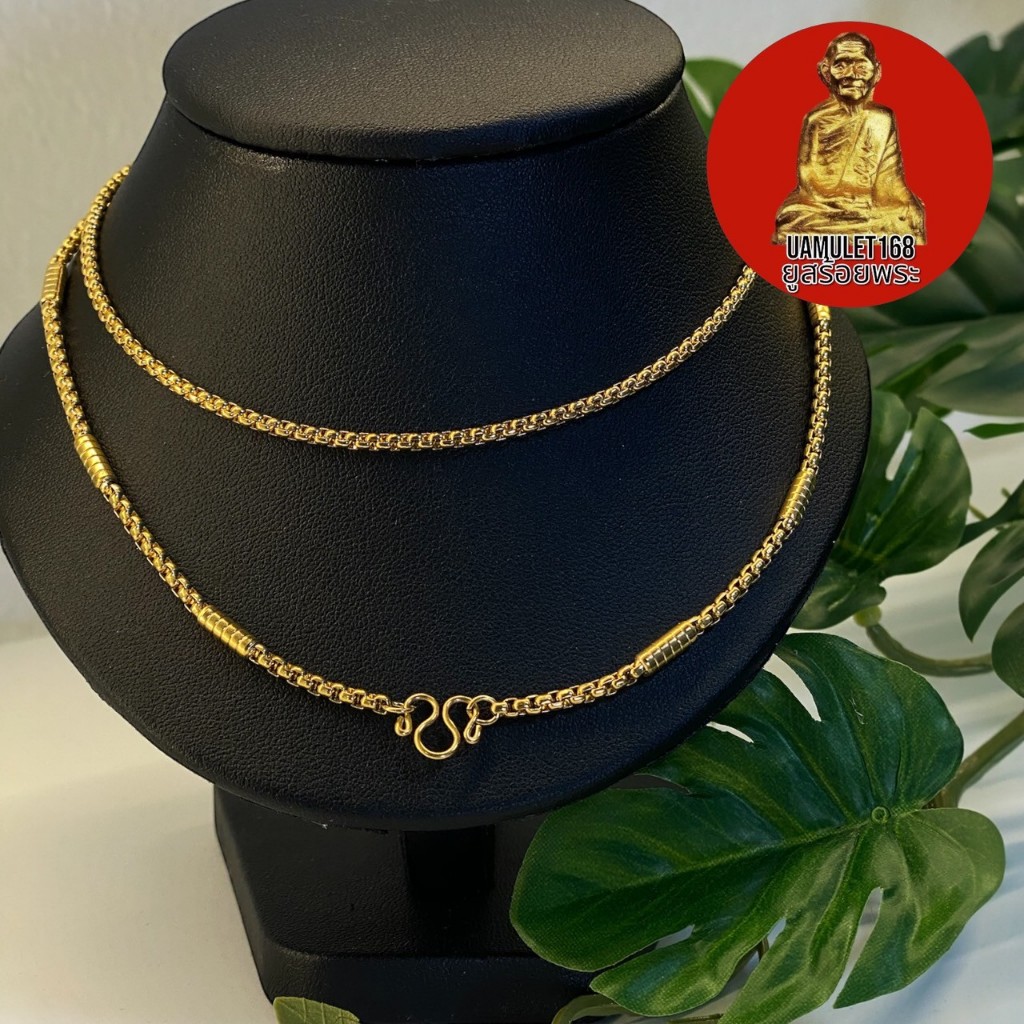 สร้อยสเเตนเลสทองเลเซอร์ 18k ลายผ่าหวายแต่งปล้อง หนา 2.5 มิล ความยาว18-24นิ้ว