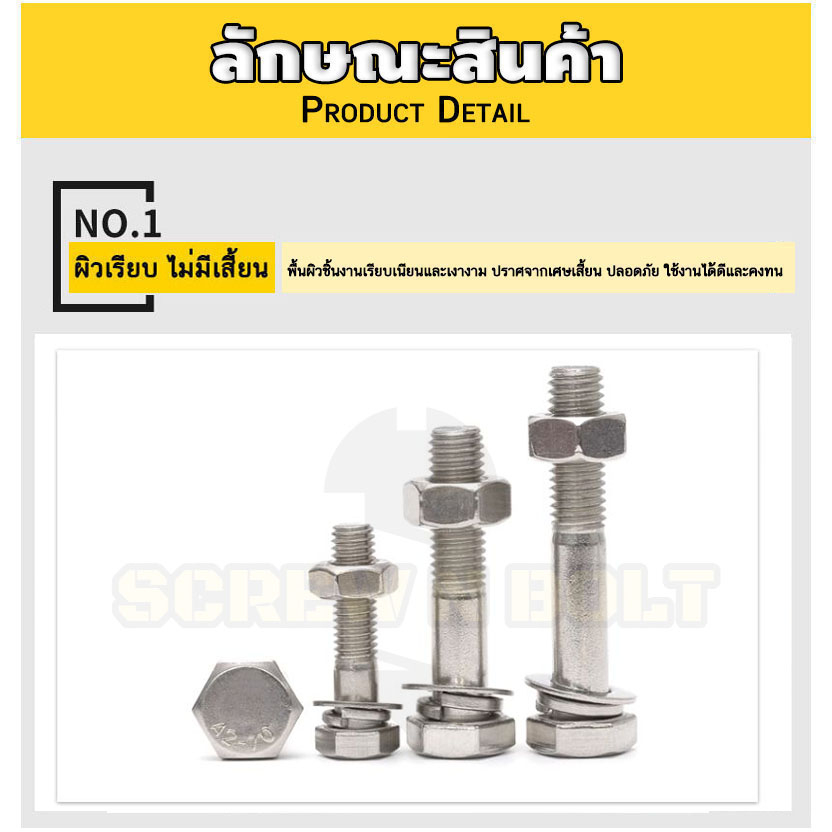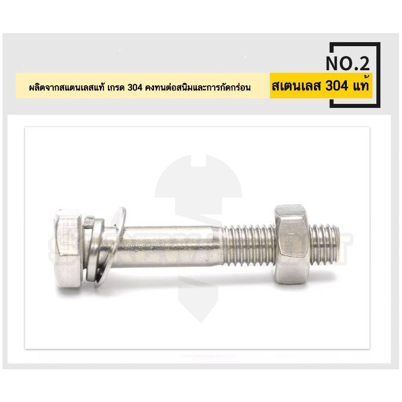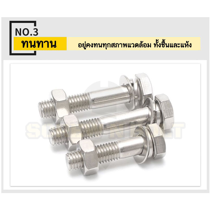 (ยกชุด) น็อต สกรู หัว หกเหลี่ยม เกลียวไม่ตลอด แหวน+สปริง+ตัวเมีย สแตนเลส 304 เกลียวมิล M6 M8 / (Set) Hex Bolt H/T SUS304