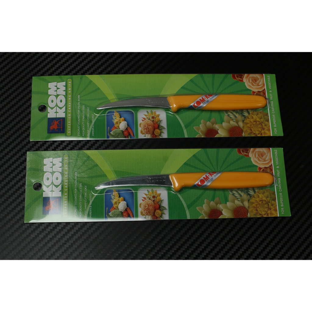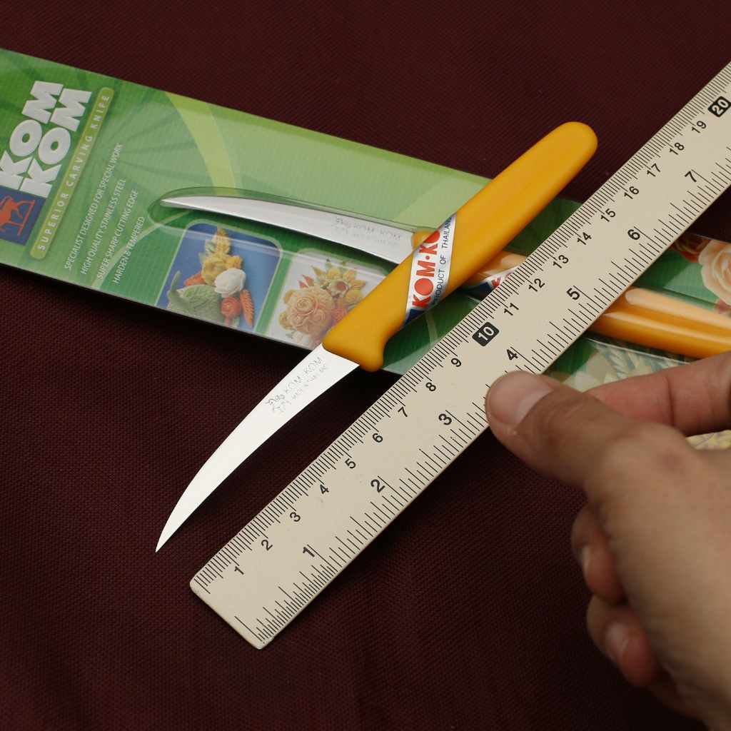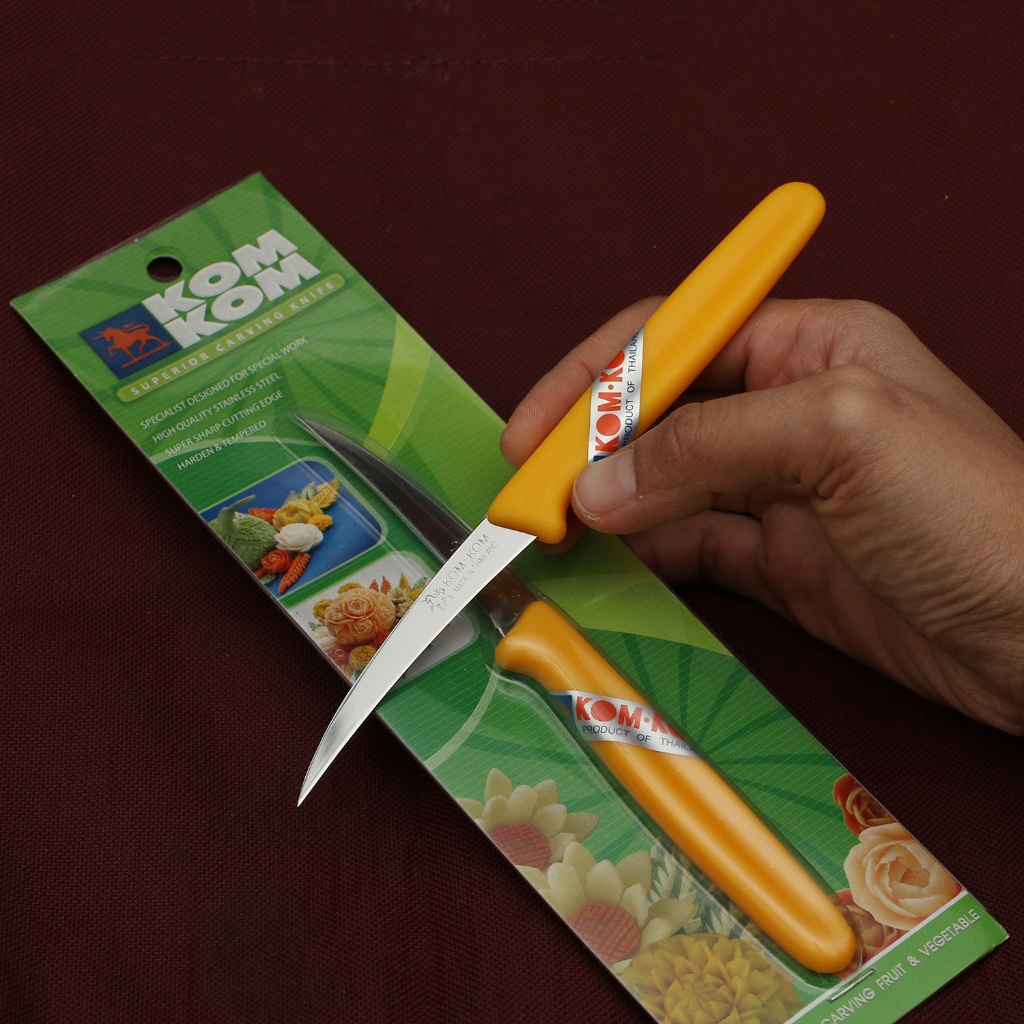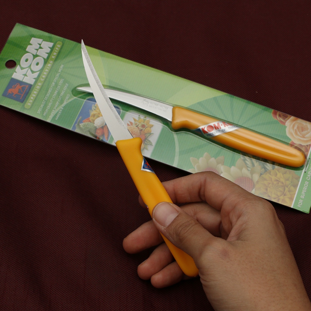 KOM-KOM รุ่น 001B คมคม มีดแกะสลัก มีดคว้าน ด้ามพลาสติกสีเหลือง 3 นิ้ว kom kom