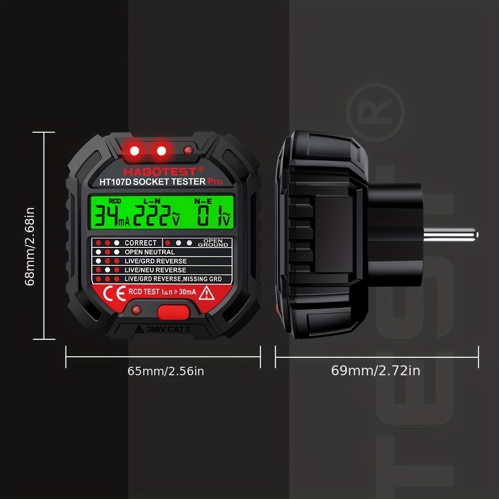 Habotest HT106 HT107 เครื่องทดสอบแรงดันไฟฟ้าดิจิทัล ปลั๊ก US UK EU