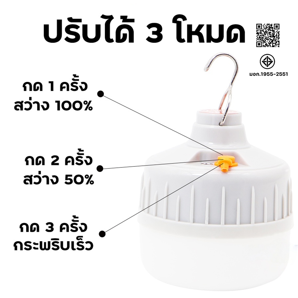 หลอดไฟ หลอดไฟตั้งแคมป์ LED 50W 100W 200W หลอดไฟพกพา หลอดไฟฉุกเฉิน แสงขาวหลอดไฟปิงปอง สว่างมาก ประหยัดไฟ 8-10hours