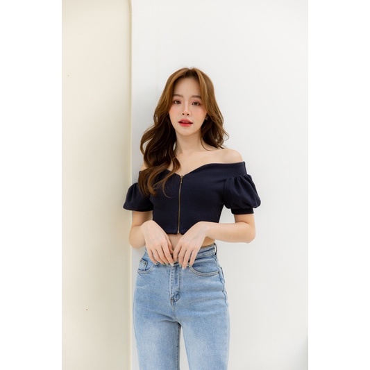 E-tax[เหลือ4xx.-ลด30%เก็บโค้ด"ร้านโค้ดคุ้ม"]Basicnotbasics - Zip crop top เสื้อครอป เสื้อปาดไหล่ ซิปหน้า