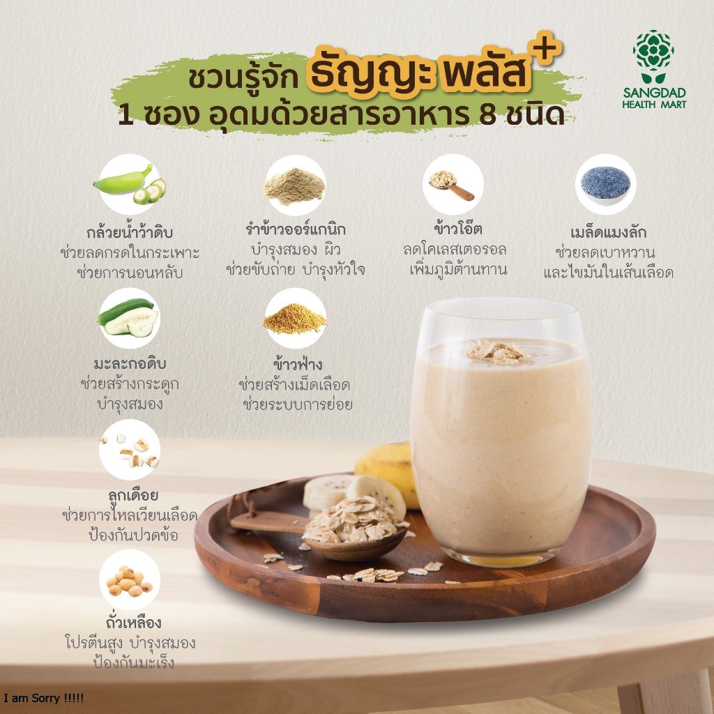 Sangdad Health Mart : ธัญญะ พลัส l ปริมาณ บรรจุ 10 ซอง (ซองละ 35 กรัม) / กล่อง