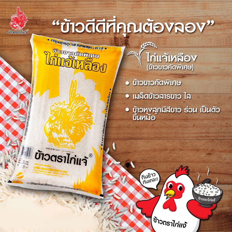 [ฟรีค่าจัดส่ง 10บาท] ข้าวตราไก่แจ้ ข้าวไก่แจ้เหลือง ข้าวขาวคัดพิเศษ ขนาด 5 กิโลกรัม