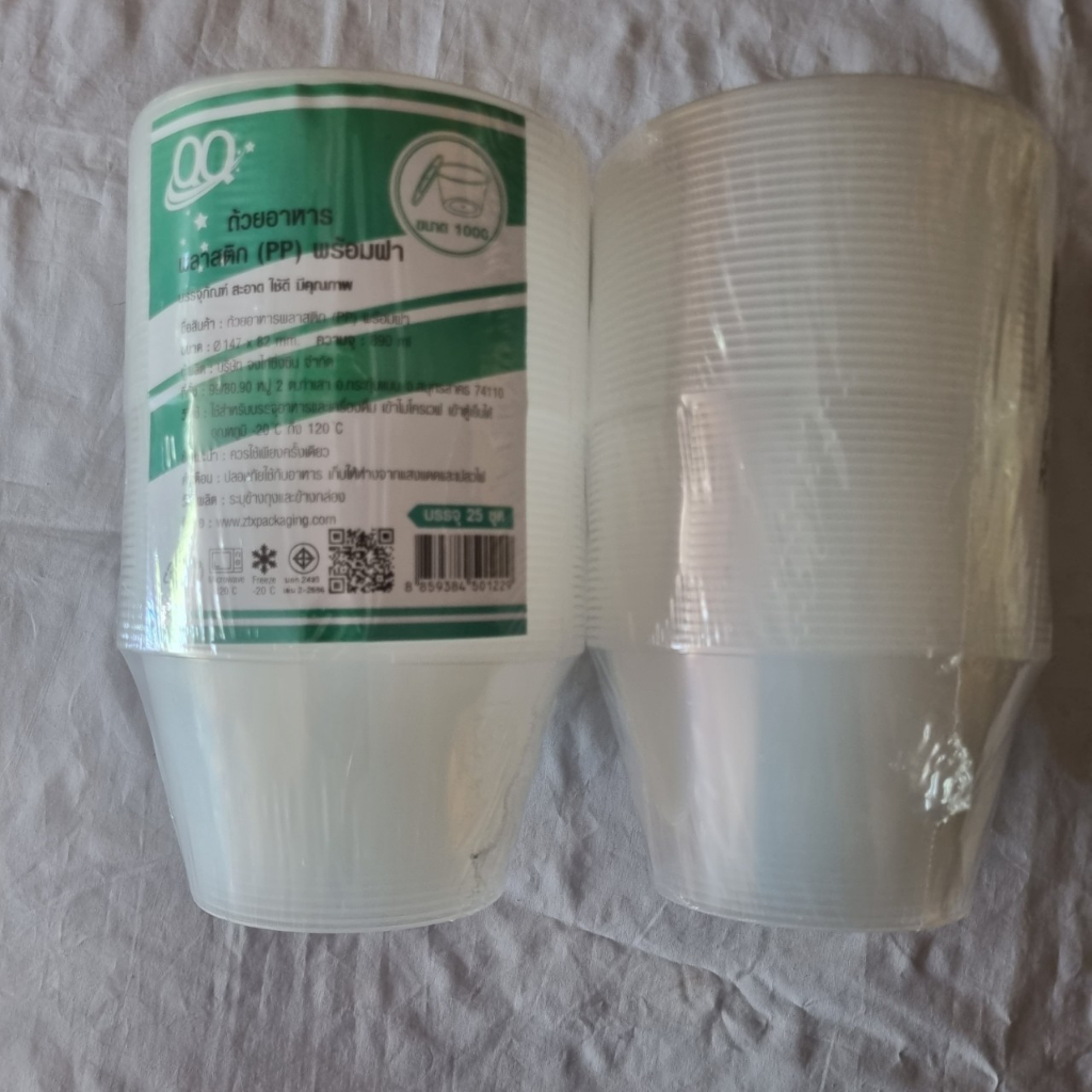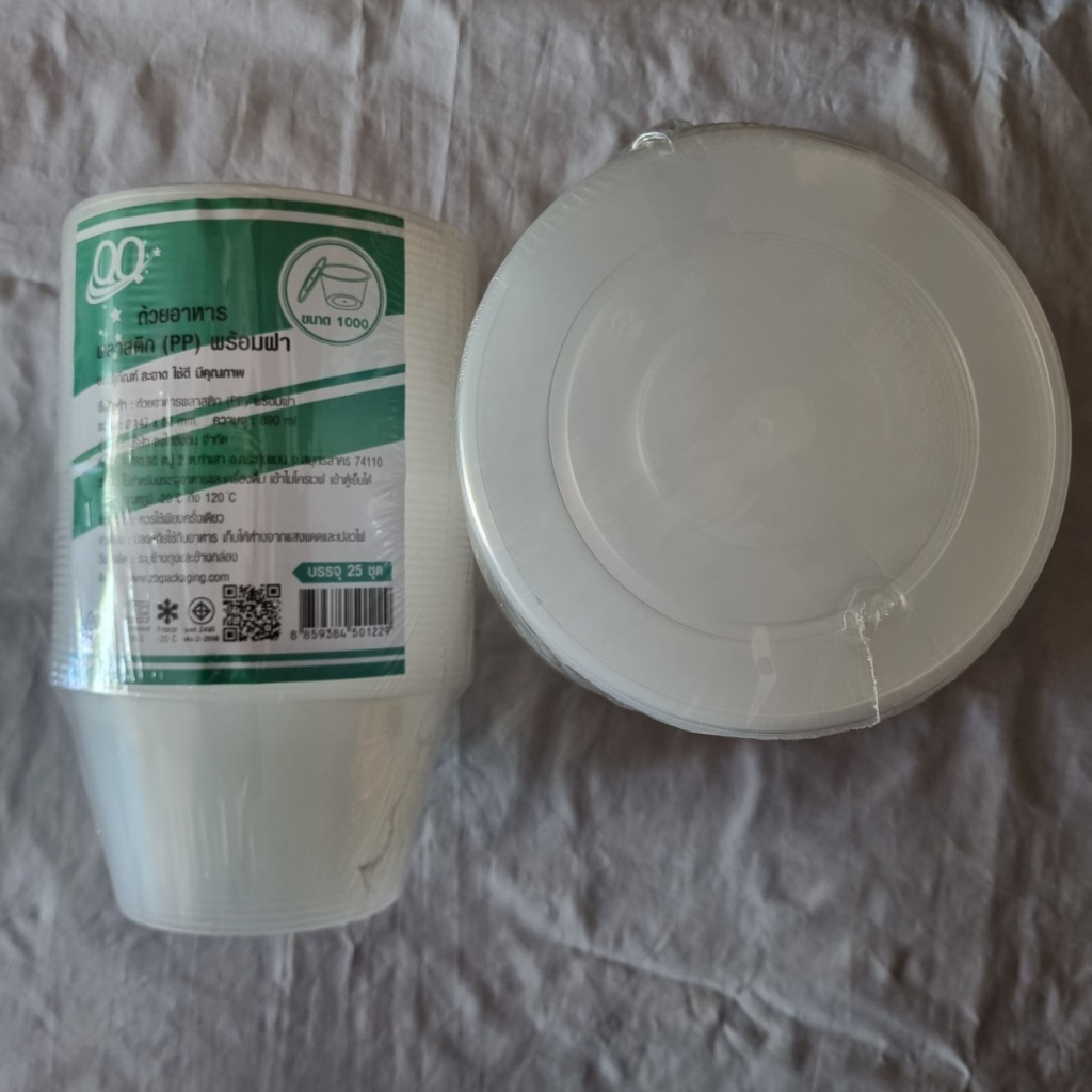 ถ้วยพลาสติก ขนาด1,000 ml ถ้วยกลมใส+ฝา เข้าไมโครเวฟ แช่เเข็งได้ เนื้อพลาสติกใส เหนียว ไม่แตกง่าย พร้อมฝา (บรรจุ25ใบ)