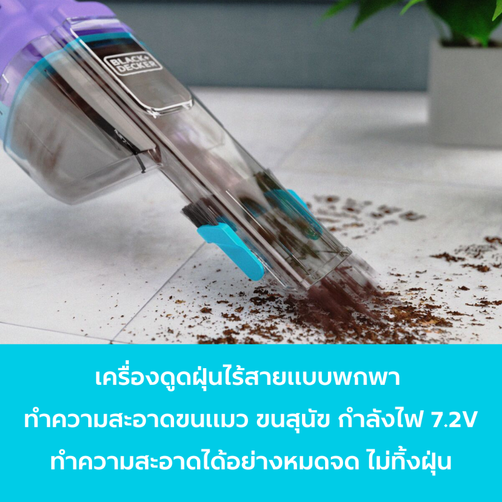 Black+Decker เครื่องดูดฝุ่นไร้สายแบบพกพา ทำความสะอาดขนแมว ขนสุนัข 7.2 โวลต์ รุ่น NVD220BP-QW [Online Exclusive]