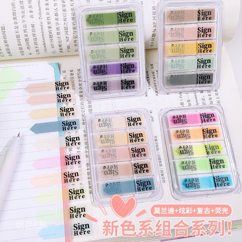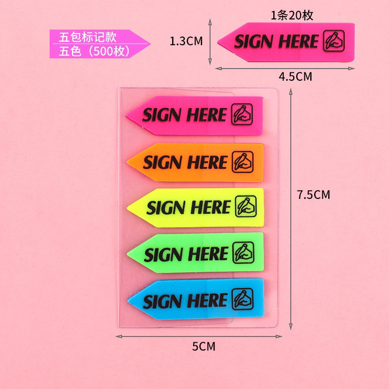 Index Sticky notes ไฮไลท์ เน้นข้อความ Sign Here สติ๊กเกอร์ ที่คั่นหนังสือ แบบพลาสติก (พร้อมส่ง)