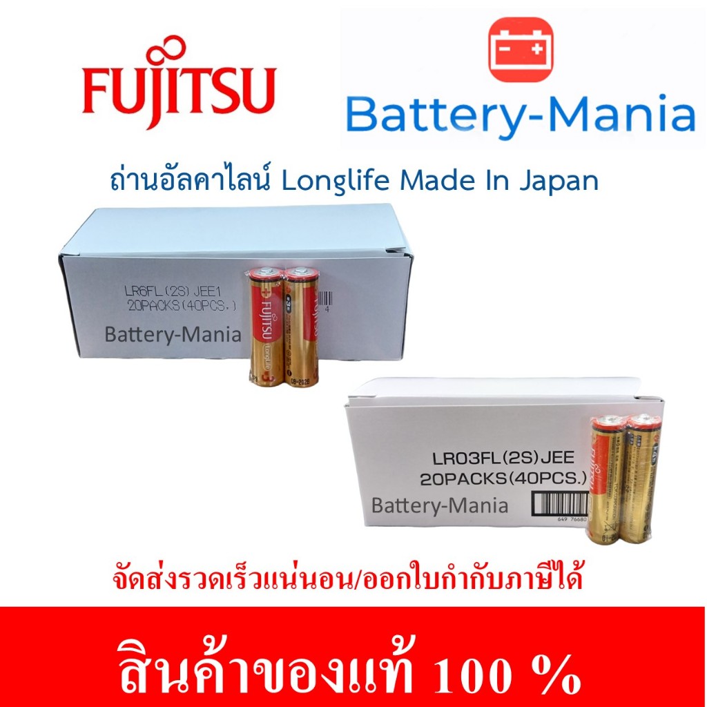Fujitsu Longlife Alkaline ถ่านอัลคาไลน์ ขนาด AA (LR6) AAA (LR3) 1.5V 1 กล่อง 40 ก้อน made in japan