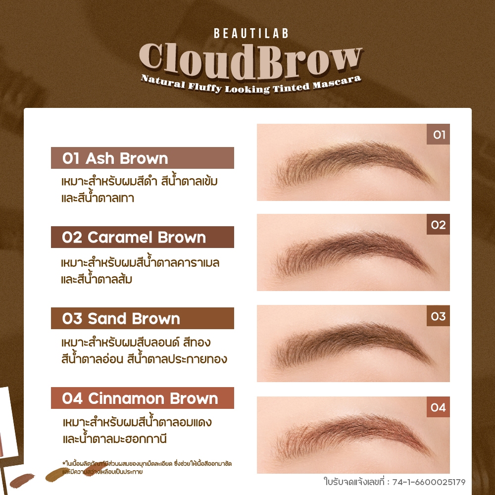 [เหลือเฉพาะสี 01]Beautilab CloudBrow Natural Fluffy Looking Tinted Mascara มาสคาร่าเปลี่ยนสีคิ้ว ล็อคขนคิ้วเด้งฟู กันน้ำ