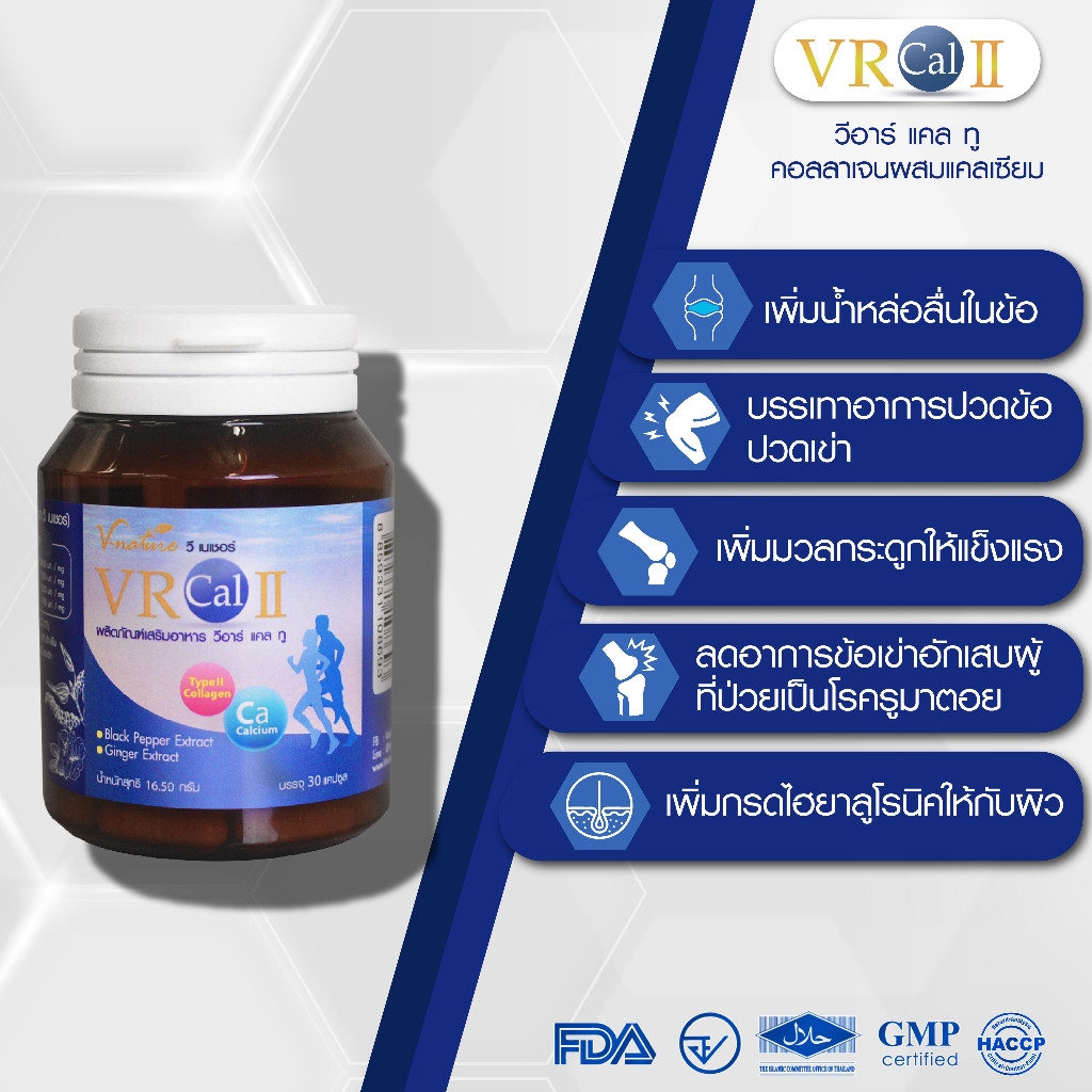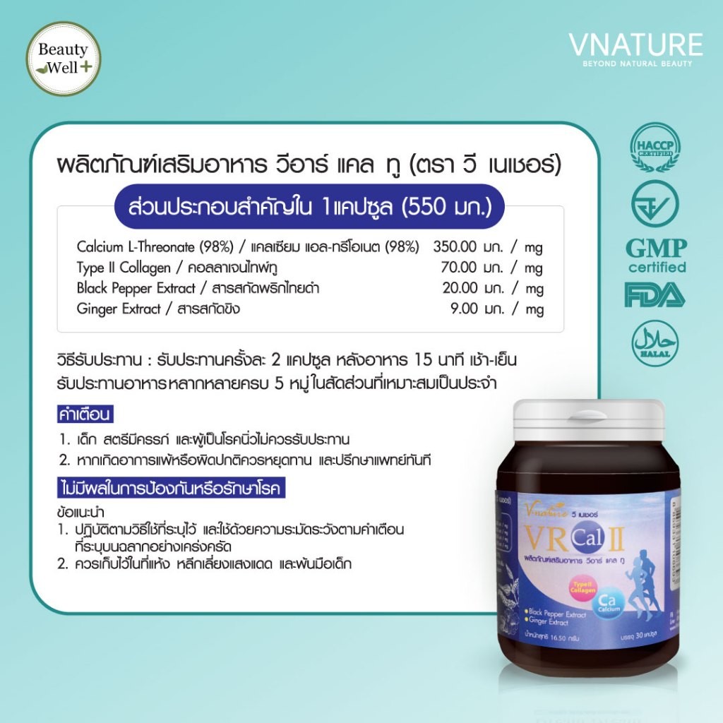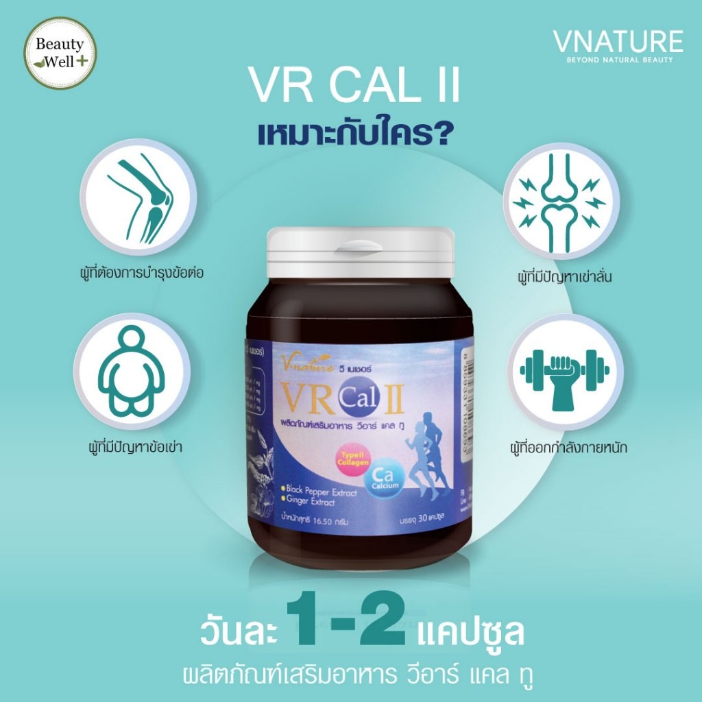 วิตามินบำรุงข้อ VNATURE VR Cal II วีอาร์แคลทู เข่าเสื่อม ปวดเข่า Calcium L-Threonate คอลลาเจน Type 2