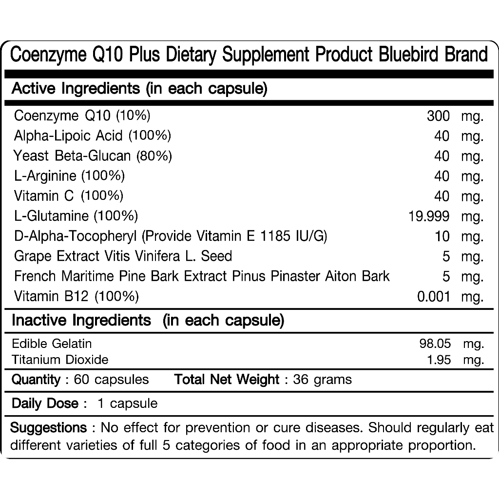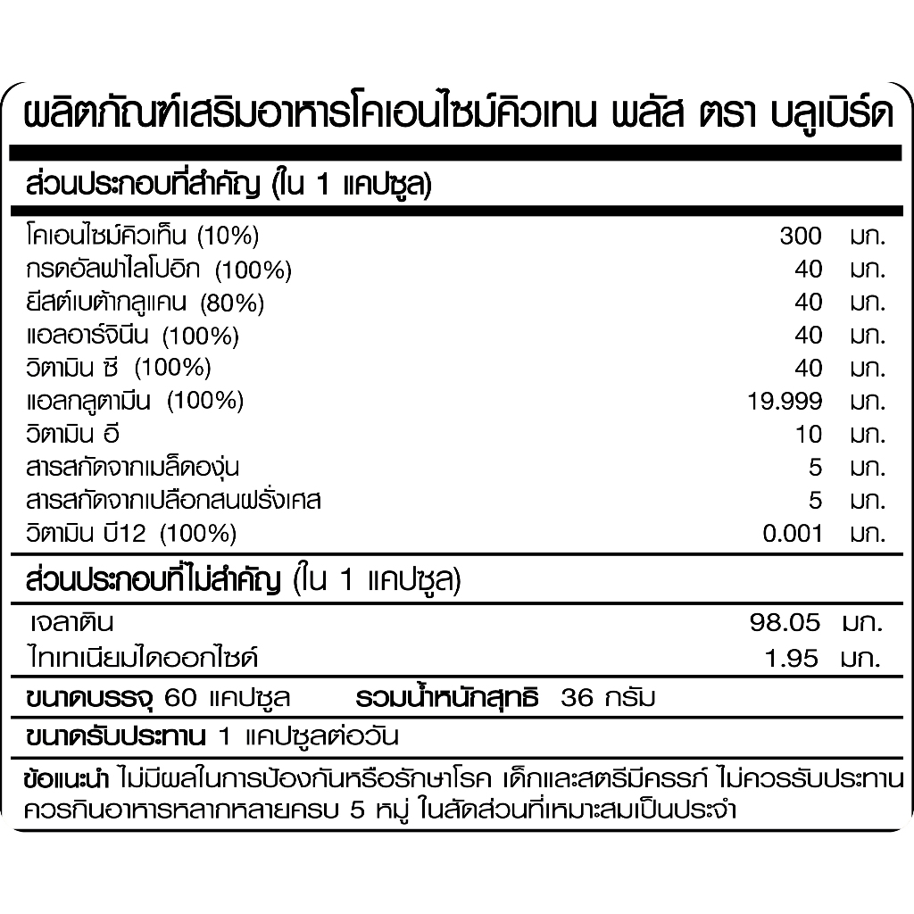Coenzyme Q10 Plus โคเอนไซม์คิวเท็น พลัส ตรา บลูเบิร์ด 600 มก. 60 แคปซูล