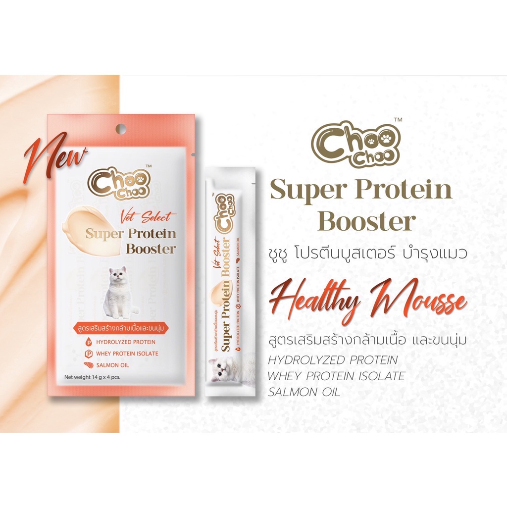 (ส่งฟรี) ใหม่! ชูชู โปรตีนบูสเตอร์ บำรุงแมว รูปแบบซองเลีย 6 แพ็ค (24ชิ้น) รสปลาแมคเคอเรลและปลาทูน่า