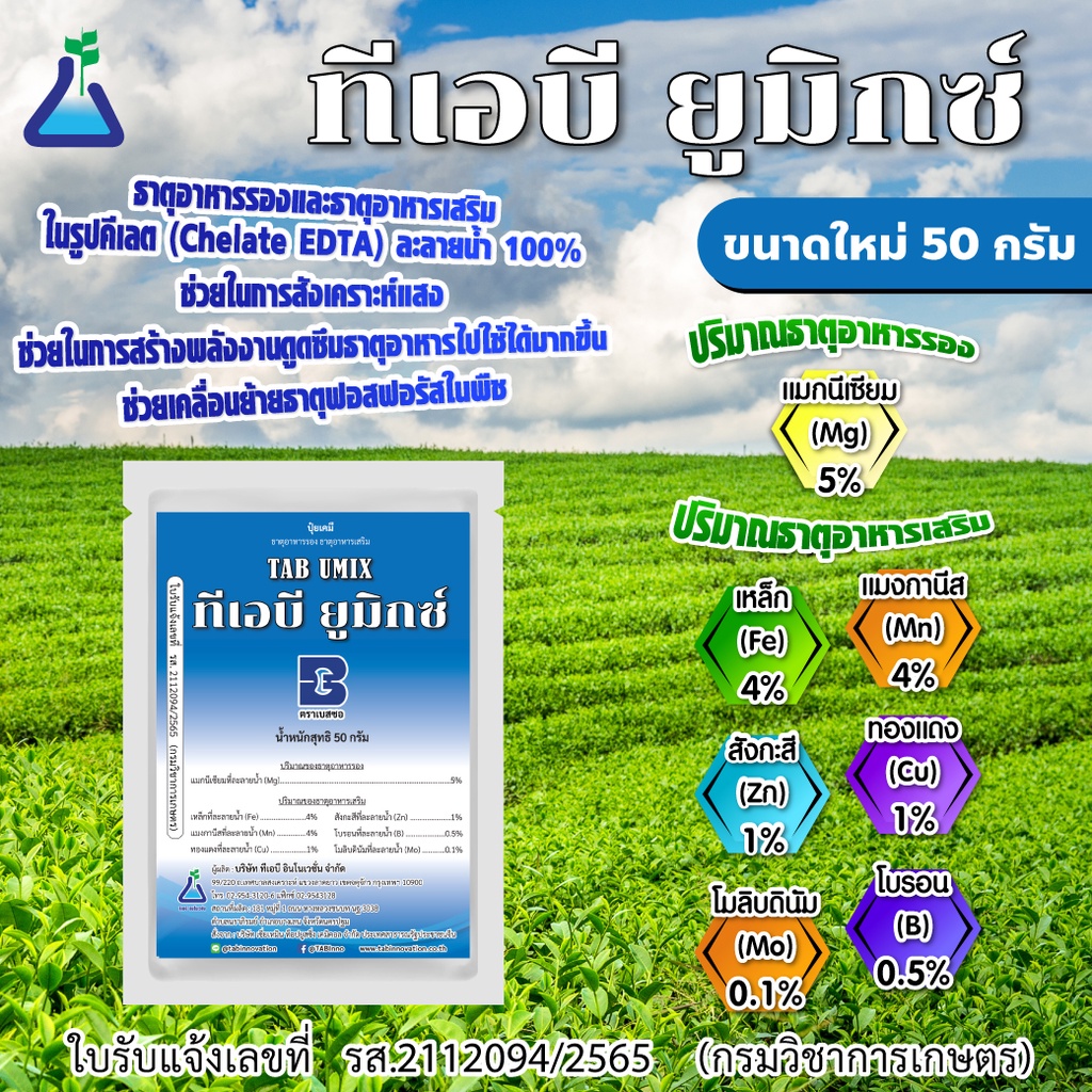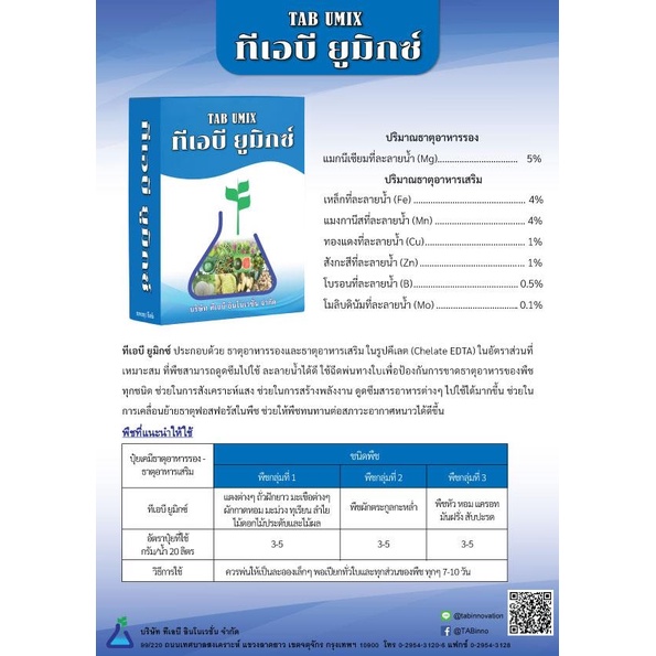 ทีเอบี ยูมิกซ์ ขนาด 50 กรัม ประกอบด้วยธาตุอาหารรอง-เสริมในรูปแบบคีเลต TAB UMIX mixed EDTA nutrients 50 กรัม