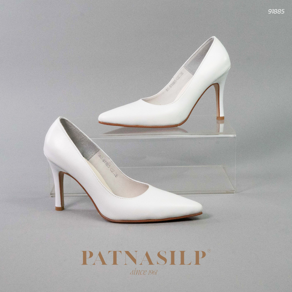 𝐏𝐀𝐓𝐍𝐀𝐒𝐈𝐋𝐏 รองเท้าคัชชู สีขาว หัวแหลม สูง 4 นิ้ว หนังนิ่ม ไม่บีบหน้าเท้า ใส่สบายมาก l 91885