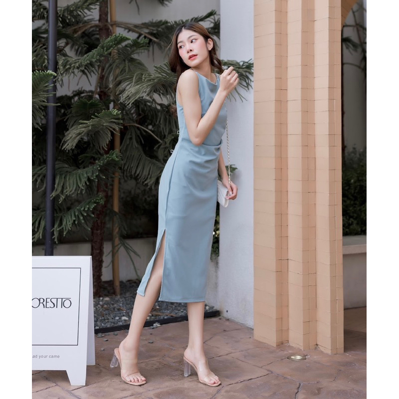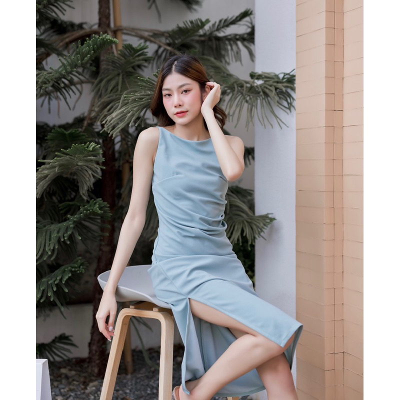 Lady MADE Kloset ชุดเดรสยาวสีฟ้าน้ำทะเล รุ่นเลดี้ เดรสออกงานสวยๆ Lady Collection LM001