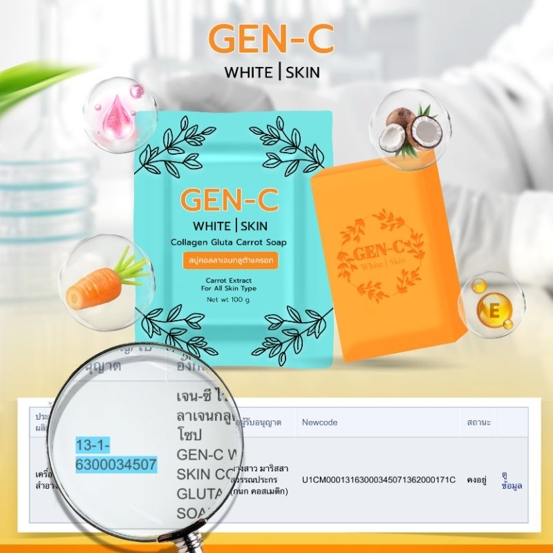 สบู่เจนซี GEN-C สบู่คอลลาเจนกลูต้า สบู่แครอทฟิลิปปินส์ หน้าติดสาร สิวอุดตัน สิวผด สิวหัวหนอง