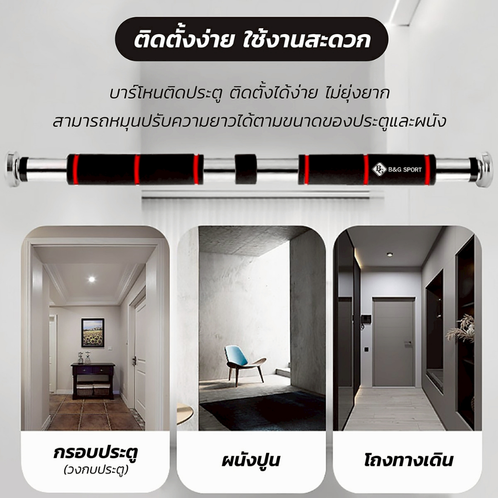 (เหล็กแท้ 100%) BG บาร์โหนติดประตู ปรับความยาวได้ บาร์โหนดึงข้อ อุปกรณ์ออกกำลังกาย Door Pull Up Bar