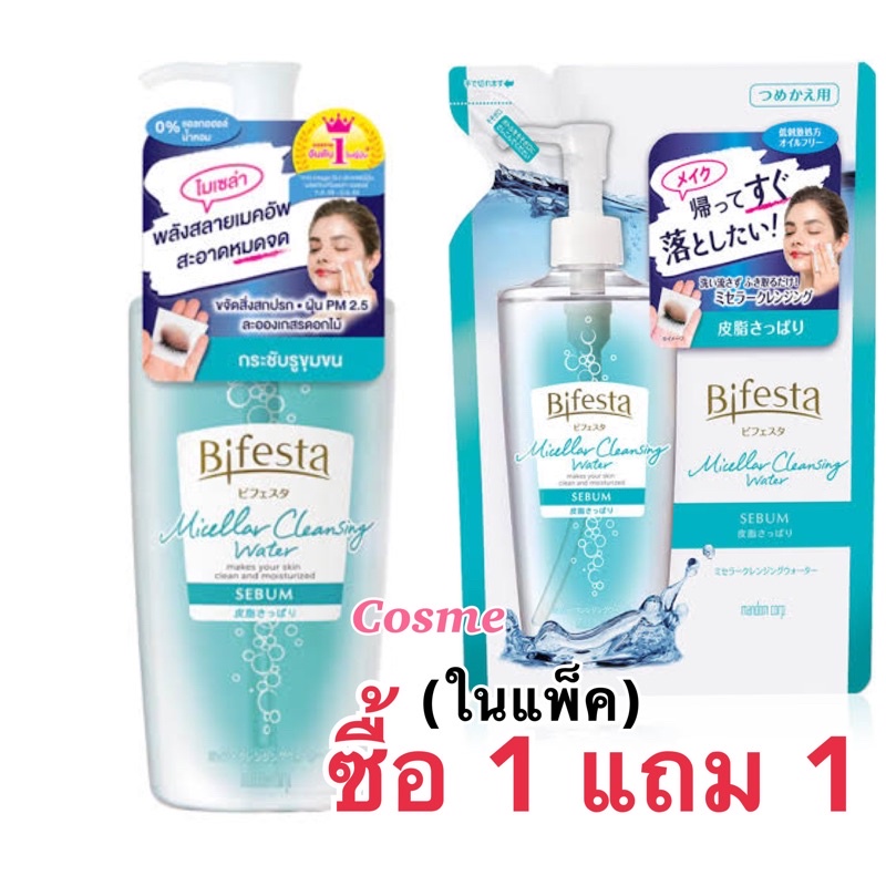 แพ็คเกจใหม่ ซื้อ 1 แถม 1 Bifesta Cleansing Water 400 ml. ฟรี Refill 360 ml.