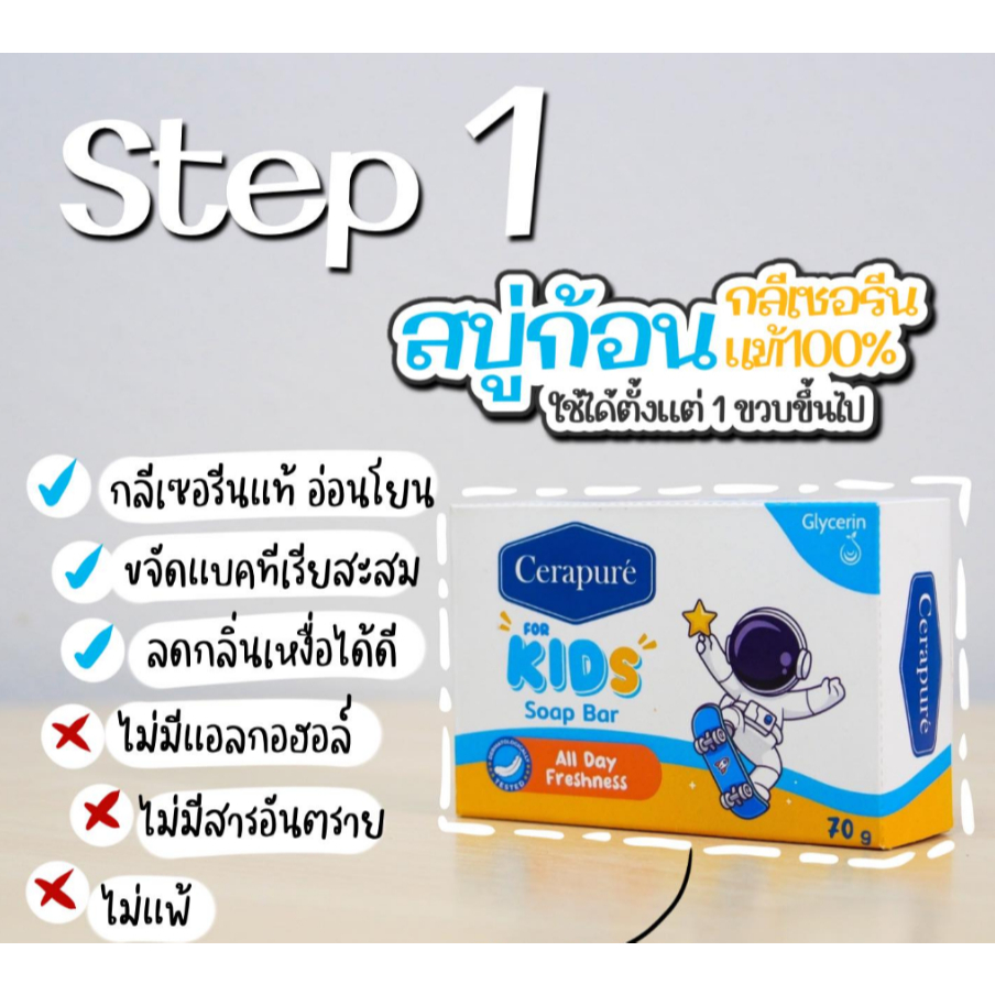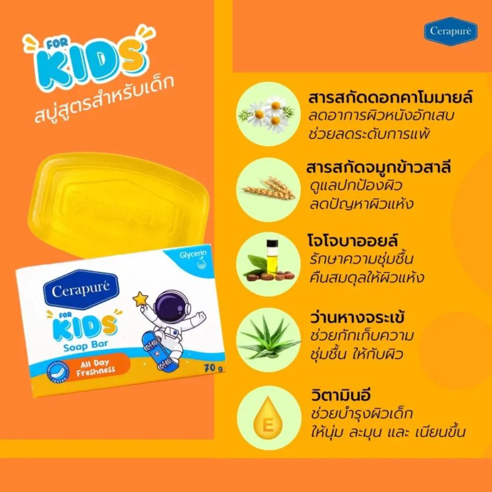 CERAPURE Soap Bar for kids สบู่สำหรับเด็ก อ่อนโยน ระงับกลิ่นตัว ระงับกลิ่นกาย (70g.)