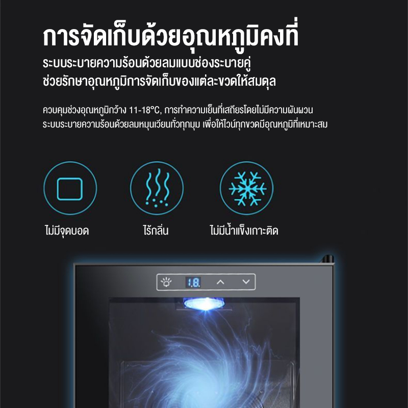 ตู้แช่ไวน์ ตู้แช่แข็งตู้ไวน์เทอร์โมสแตติกขนาดเล็ก 8-32 ขวด อุณหภูมิ 11-18 °C ไฟ LED ชั้นวางไม้บีช