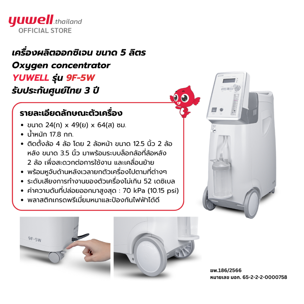 เครื่องผลิตออกซิเจน ขนาด 5 ลิตร Yuwell รุ่น 9F-5W รับประกันศูนย์ไทย 3 ปี
