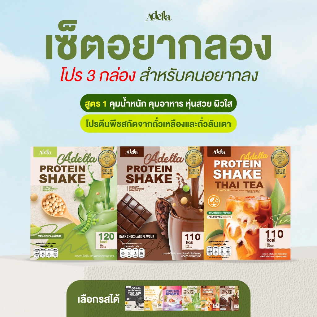 Promotion โปรตีนเชคอเดลล่า 3 กล่อง❗ลูกค้าระบุรสชาติได้ หรือ ให้บริษัทคละรสให้❗หากไม่ระบุรสชาติบริษัทจะคละให้