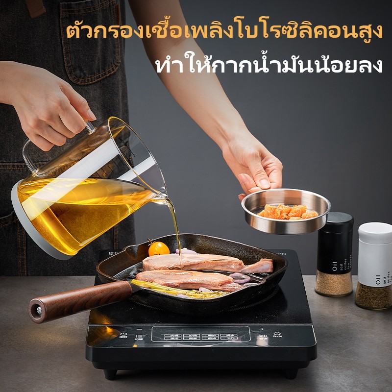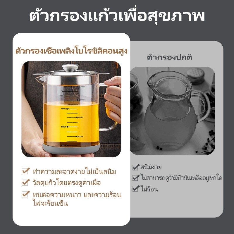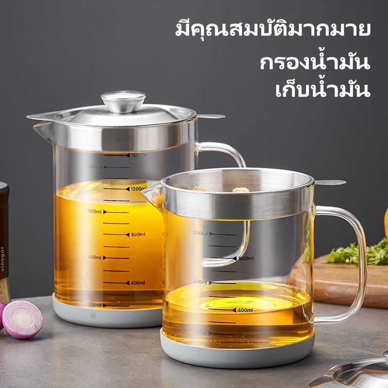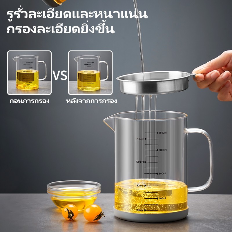 GIANXI 1L / 1.5L ถ้วยกรองน้ำมันแก้ววัสดุกรองน้ำมันพร้อมฝาปิดและหน้าจอกรองน้ำมัน