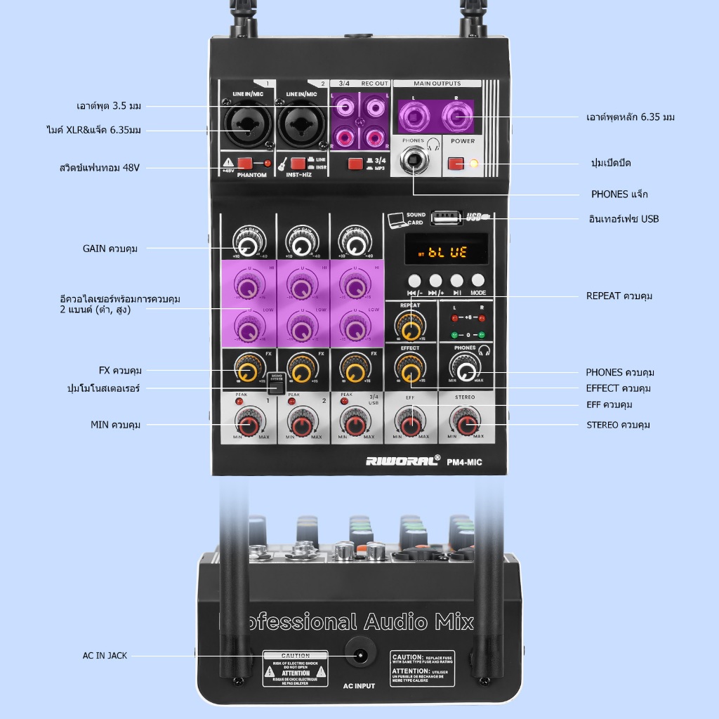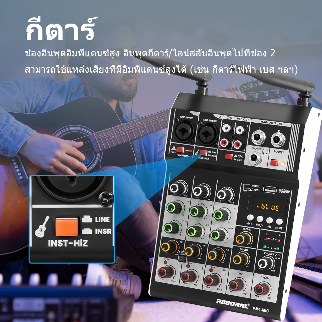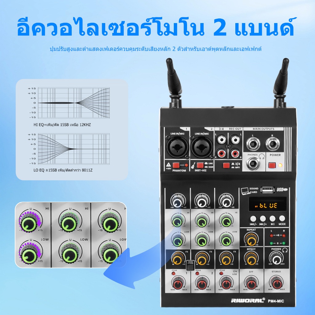 มินิ มิกเซอร์ 4 ช่อง โลหะ เคส มิกเซอร์ บลูทูธ USB เล่น +48V Phantom พาวเวอร์ ดูอัล มือถือ ไมโครโฟน พาวเวอร์ มิกเซอร์