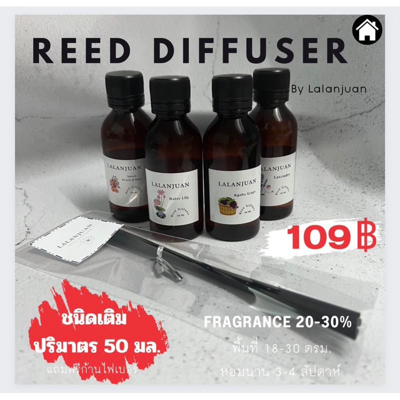 ชนิดเติม หอมมาก หอมนาน Reed Diffuser Lalanjuan หยดเครื่องพ่นได้ ก้านไม้หอมกระจายกลิ่นชนิดรีฟีล หอมนาน 30 วัน