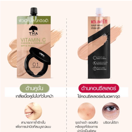 วิตามินซีคูชั่นแอนด์คอนซีลเลอร์ (7g+2g) ฑาบายน้องฉัตร SPF15PA+++ THA BY NONGCHAT Vitamin C Cushion Concealer