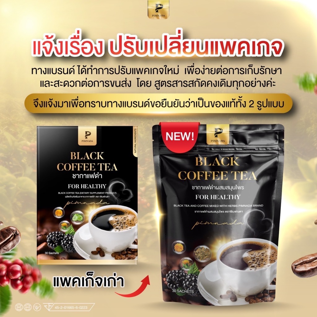 (ส่งด่วน) ชากาแฟดำ พิมพ์ณดา พ กาแฟดำเพื่อสุขภาพ สารสกัดจากสมุนไพร 11 ชนิด 1 กล่อง 30 ซอง