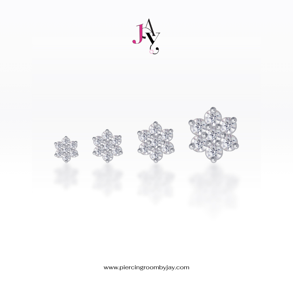 Piercingroom by Jay จิว/ต่างหูสำหรับผิวแพ้ง่าย CZ Flower แป้นแบน เงินแท้ (ราคาต่อชิ้น)