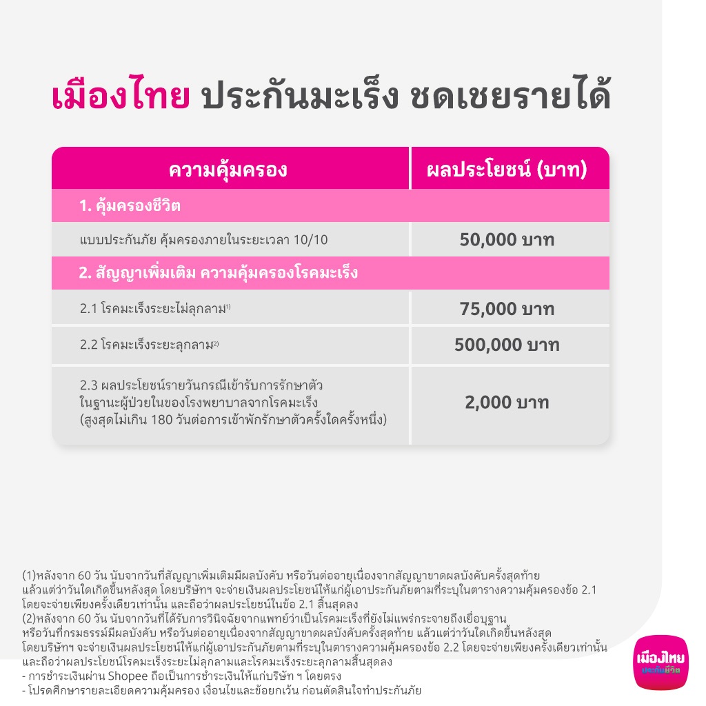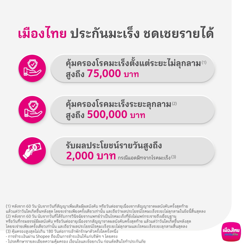 [E-voucher] ประกันโรคมะเร็ง: เมืองไทย ประกันมะเร็ง ชดเชยรายได้