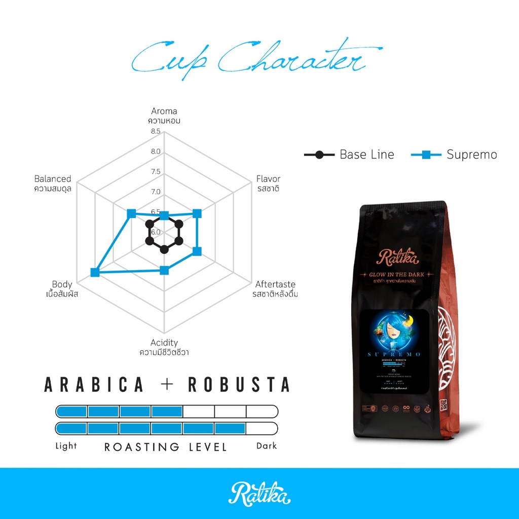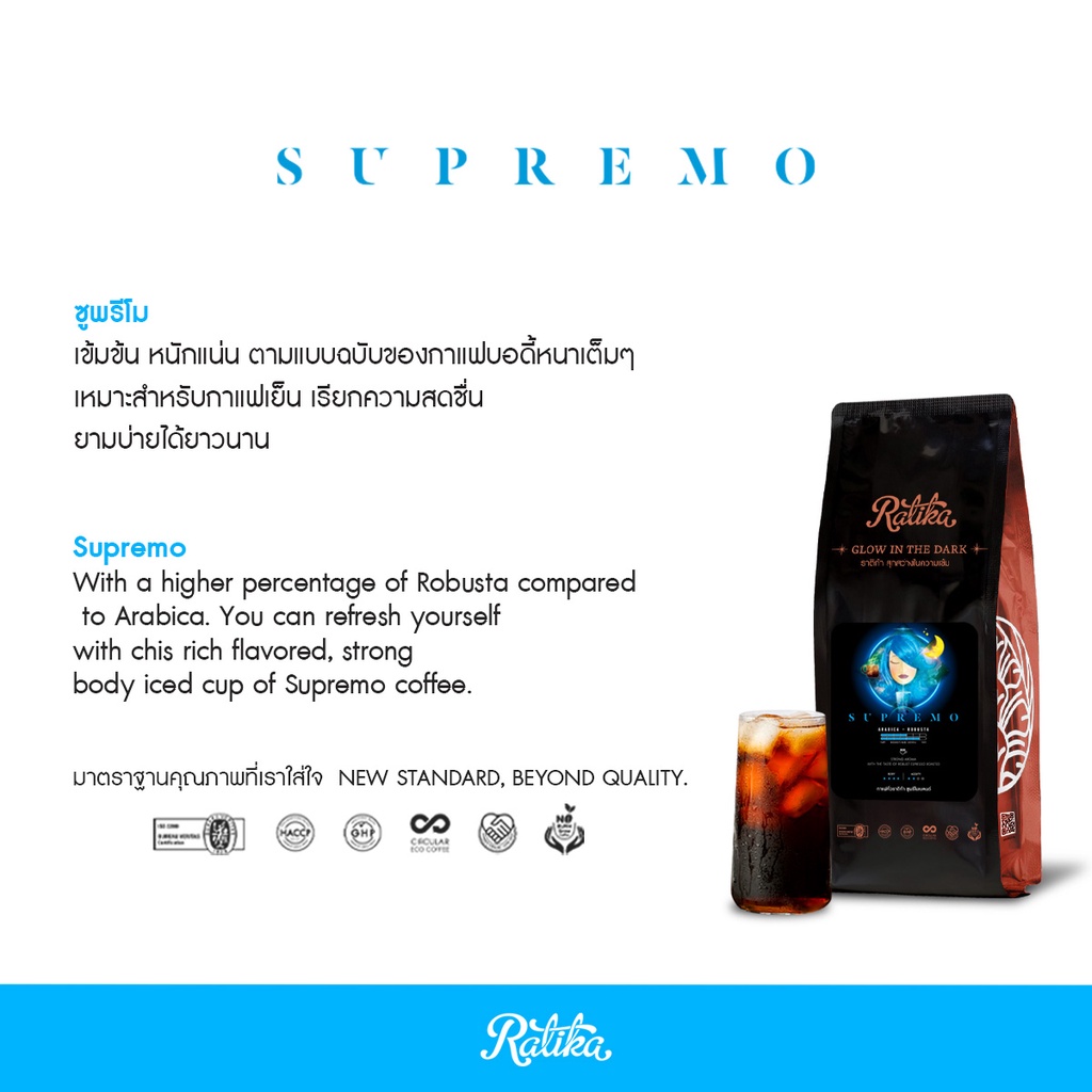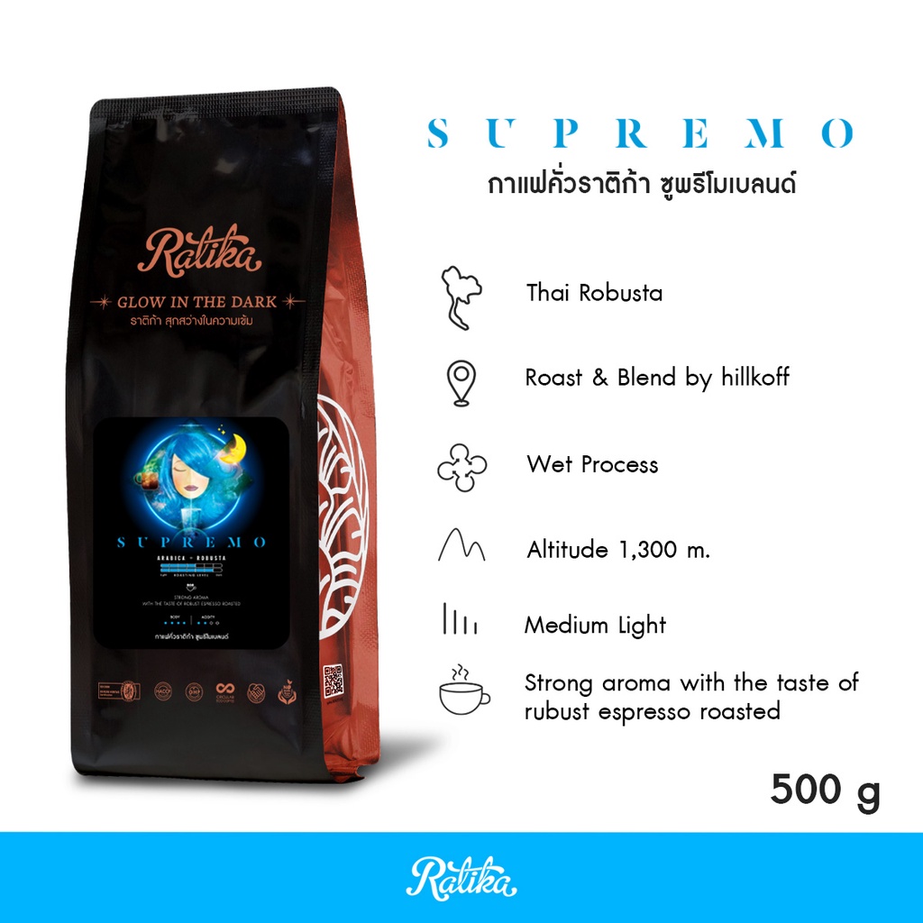 Ratika | เมล็ดกาแฟคั่ว Ratika Coffee Supremo Blend : กาแฟราติก้า สูตร ซูพรีโม ขนาด 500 g