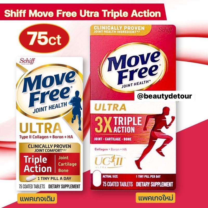 [Exp.12/2027- 75 เม็ด ฉลากใหม่ พร้อมกล่อง] Schiff Move Free Ultra มูฟฟรีอัลตร้า ลดอาการปวดไขข้อข้อ เพิ่ม Collagen Type 2