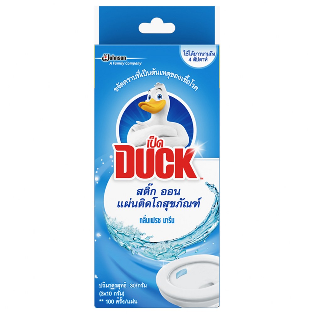 เป็ดสติ๊ก ออน เจลดับกลิ่น โถสุขภัณฑ์ กลิ่นเฟรชมารีน 30 กรัม Duck Stick On Toilet Gel Cleaner Fresh Marine 30g