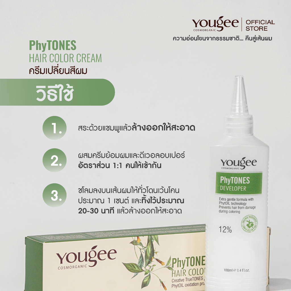 Yougee Phytones Hair Color Cream ครีมเปลี่ยนสีผม โทนสีหม่นเขียว สี 8.2 บลอนด์สว่าง ประกายเขียวหม่น