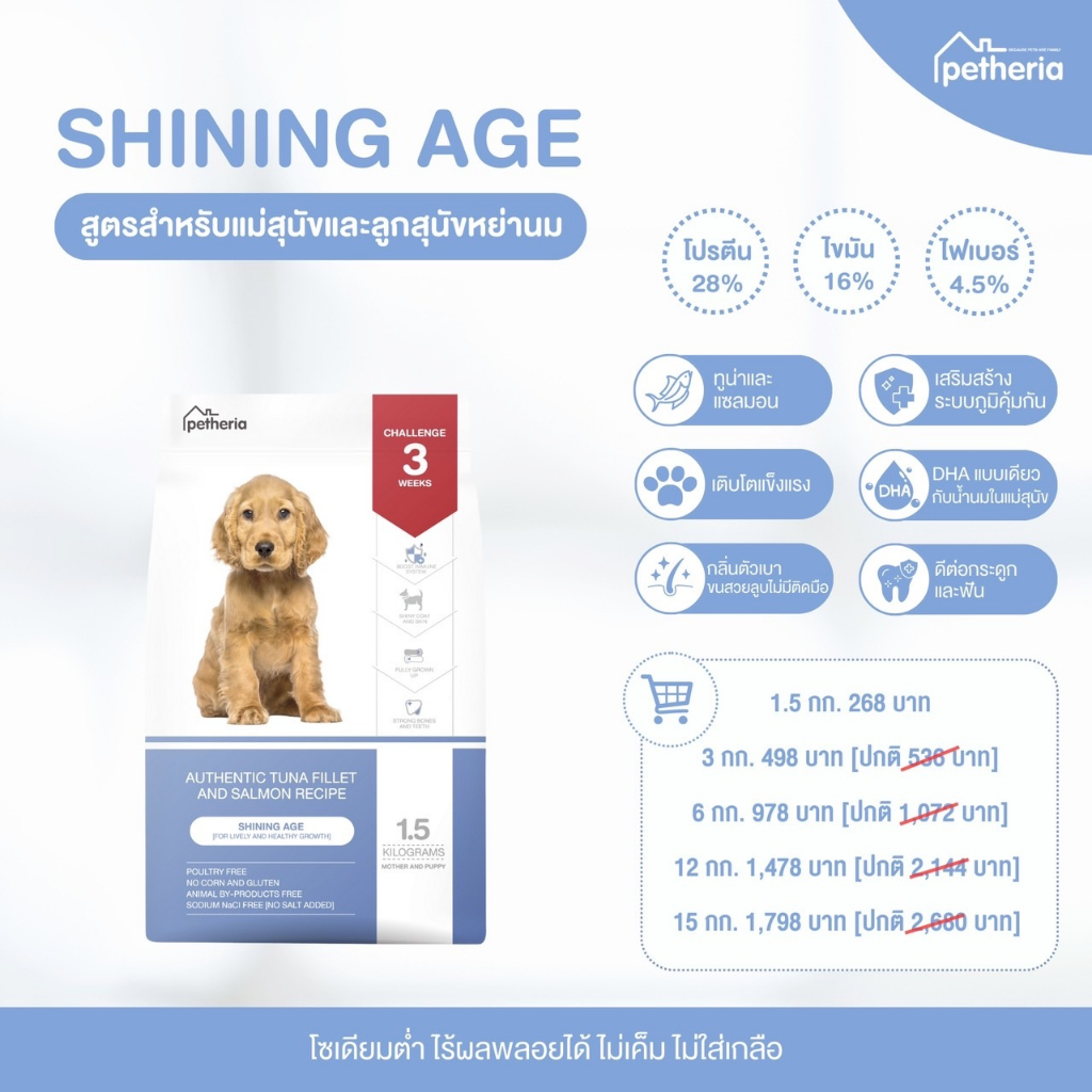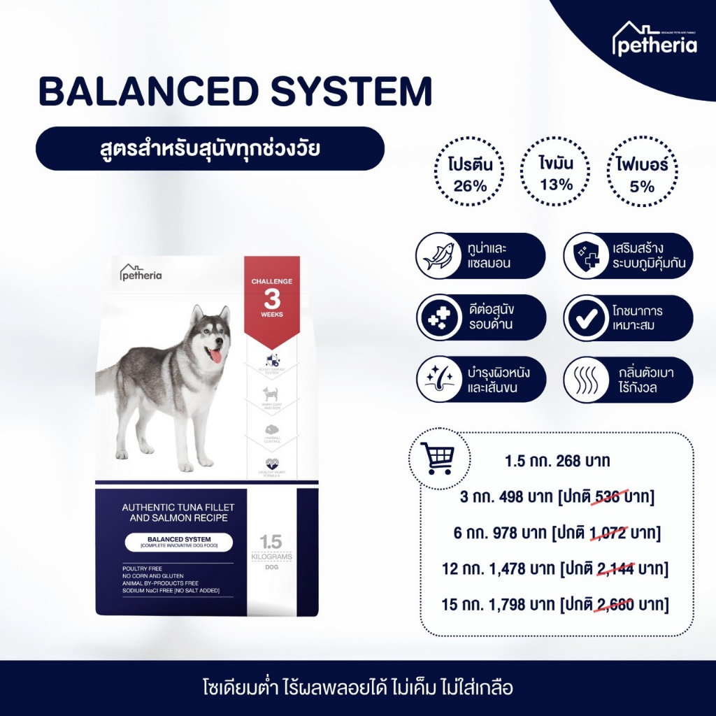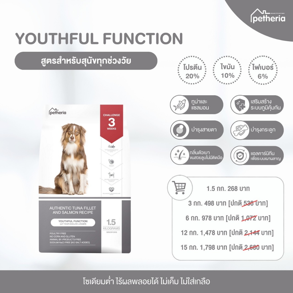Petheria อาหารสุนัข เพ็ทเทอเรีย 1.5 กิโลกรัม ครบทุกสูตร โซเดียมต่ำ ไม่เค็ม ดูแลขนและผิวหนัง