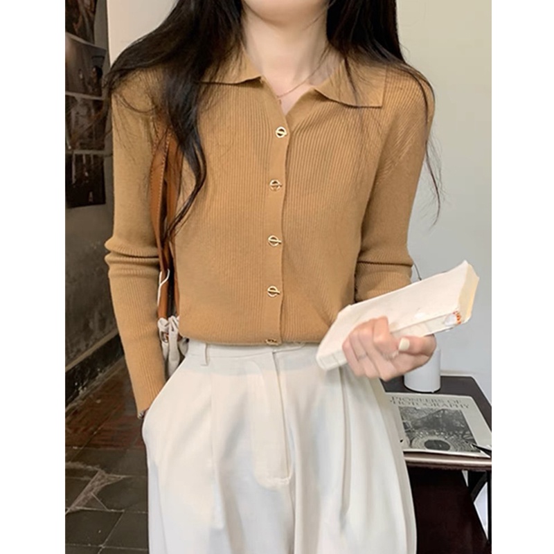 Suxi เสื้อกันหนาวแขนยาว คอปกโปโล ผ้าถัก น้ําหนักเบา แฟชั่นฤดูใบไม้ร่วง สําหรับผู้หญิง