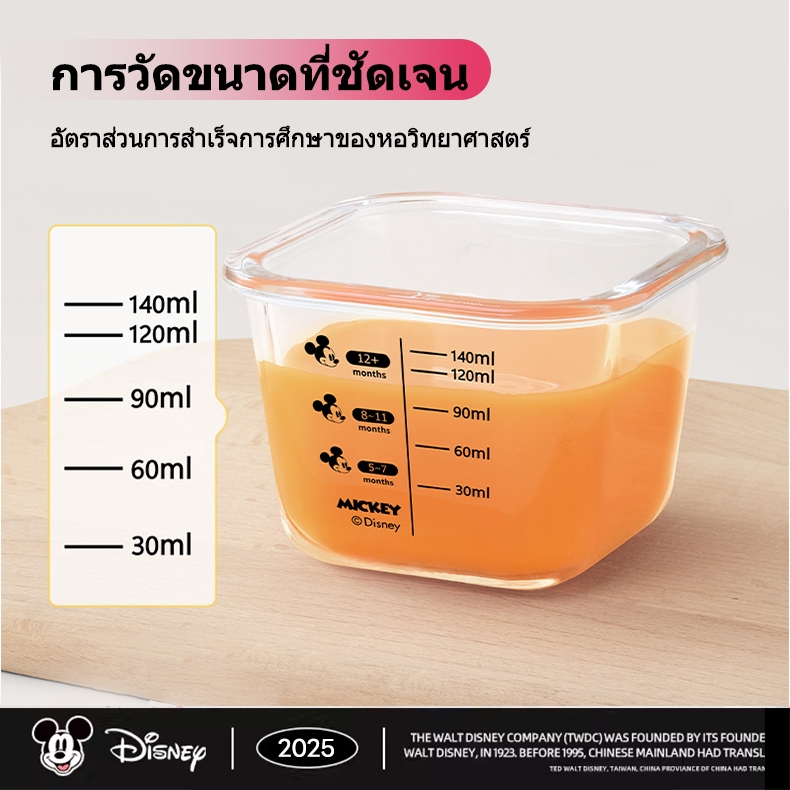 Disney 160ml กล่องแก้วเก็บอาหารอาหารทารกแช่แข็ง ถ้วยแก้วใส่อาหาร กล่องเก็บอาหารเด็ก ปลอดภัยสำหรับลูกน้อย เข้าไมโครเวฟได้