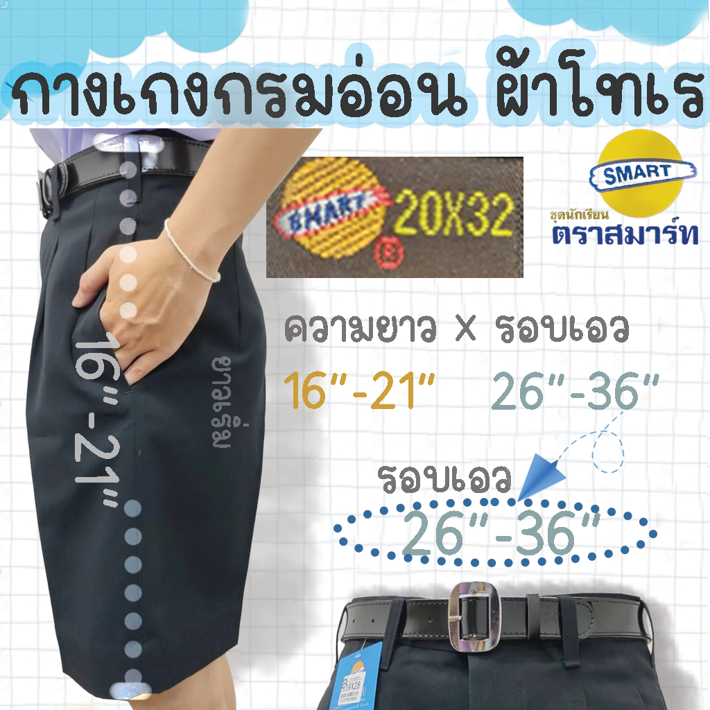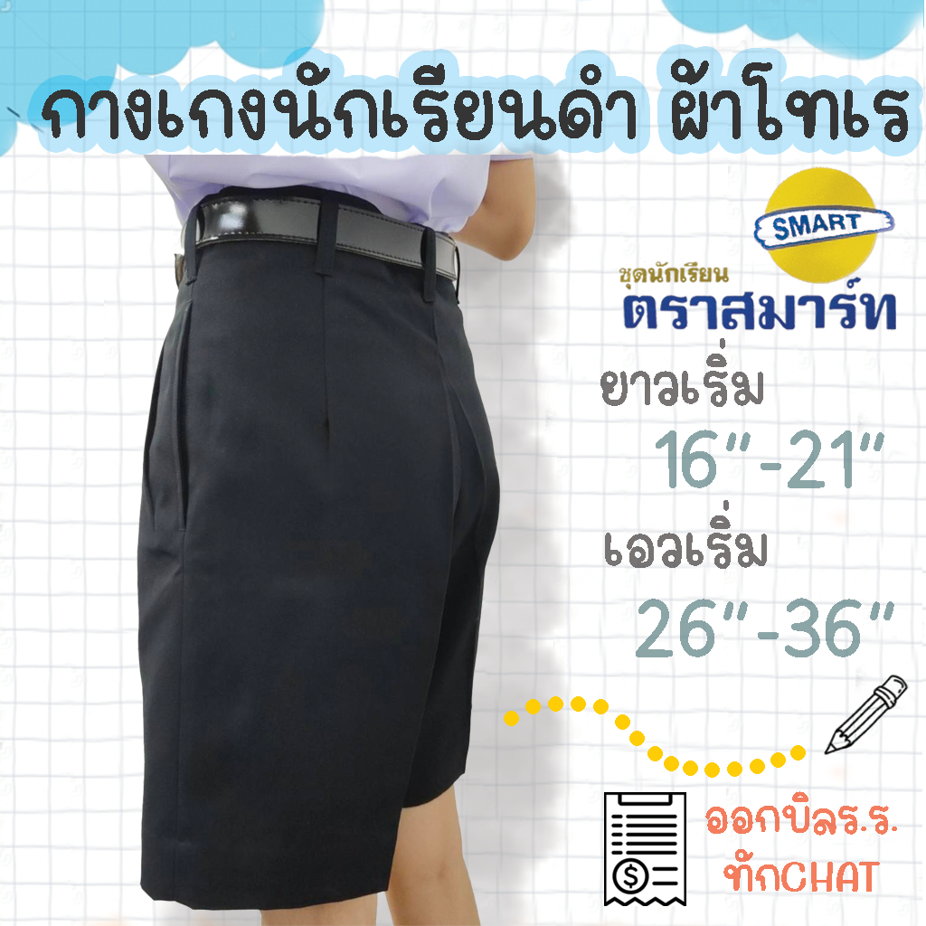 กางเกงนักเรียนชาย สีดำ ผ้าโทเร ตราสมาร์ท SMART ยาว 16-21 นิ้ว เอว 26-36 นิ้ว