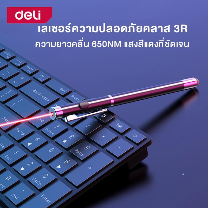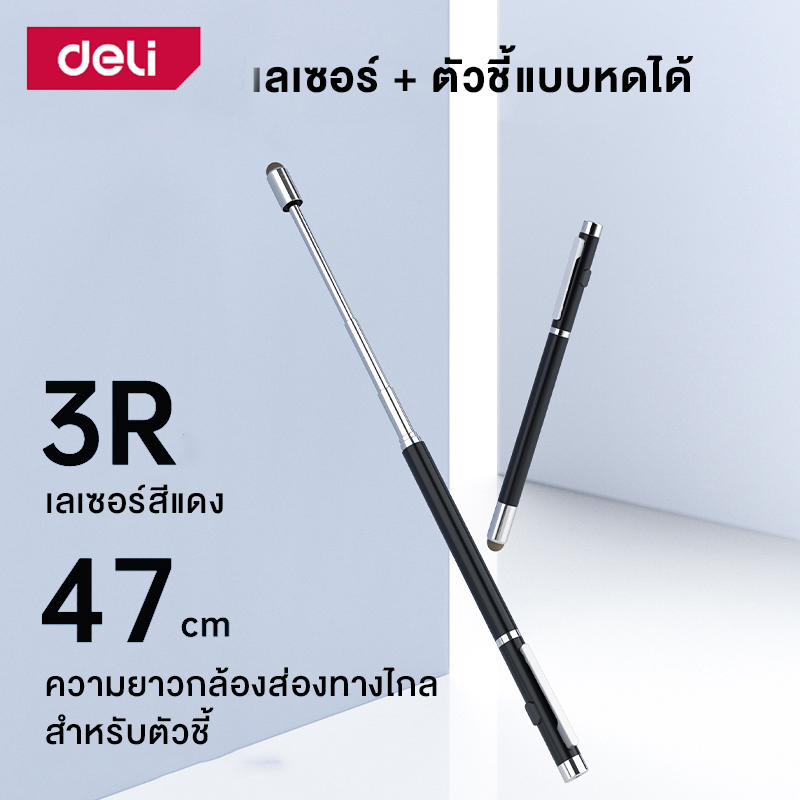 Deli เลเซอร์พอยเตอร์ ปากกาเลเซอร์ พ้อยเตอร์ เลเซอร์ ไร้สาย สามารถยืดได้ การนำเสนอ Laser Pointer