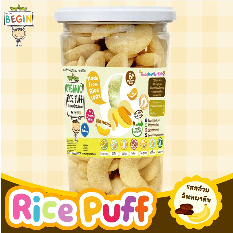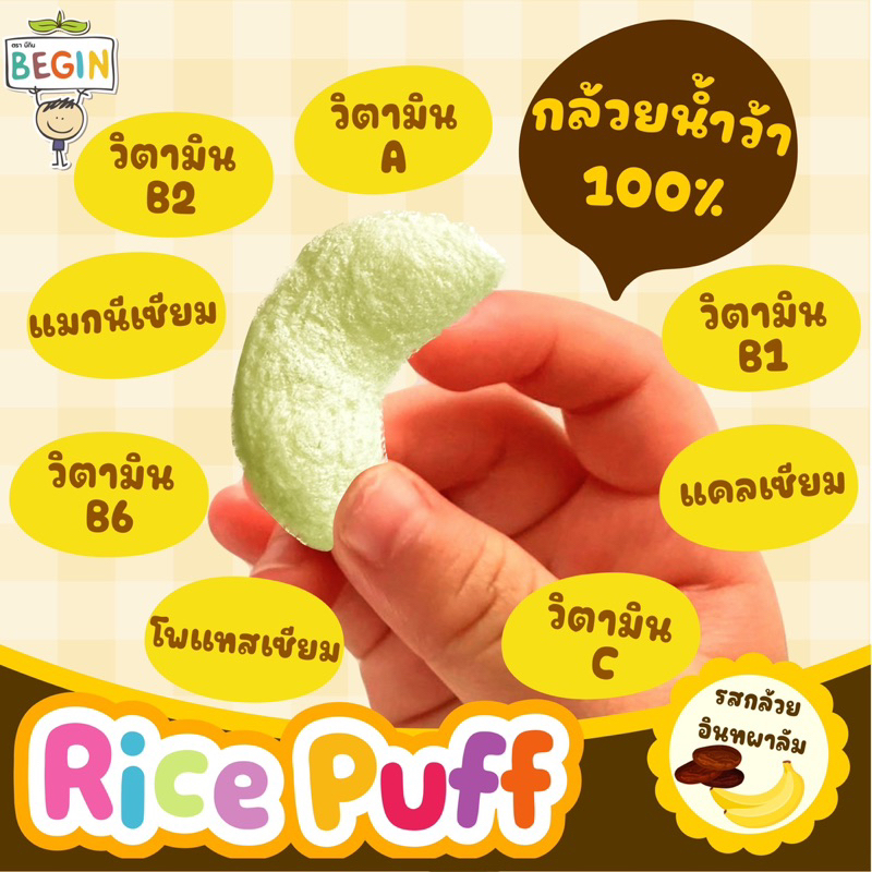 Begin ข้าวอบกรอบผสม "กล้วยอินทผาลัม" Rice Puff ไม่มีแป้งสาลี ขนมเด็ก 8 เดือนขึ้นไป ขนมเด็กออแกนิค อาหารเด็ก ขนมเด็กอร่อย