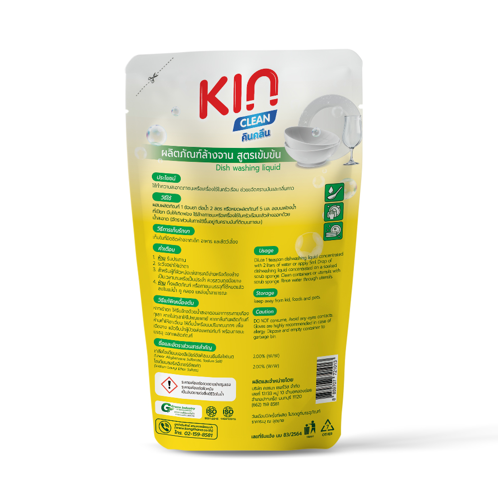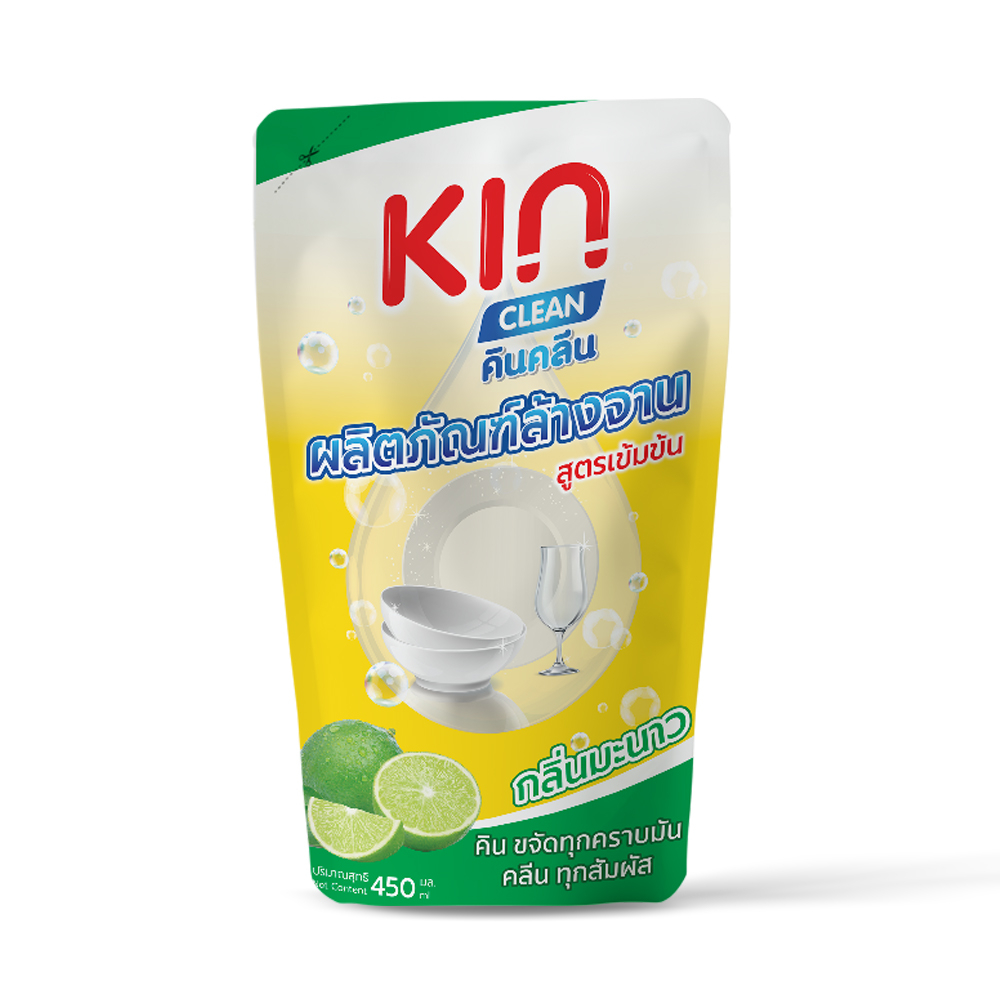 [3 ซอง]คิน น้ำยาล้างจาน กลิ่นมะนาวสูตรเข้มข้น(แบบถุง)450ml.x 3ซอง - Kin Dishwashing Liquid 450ml.x 3