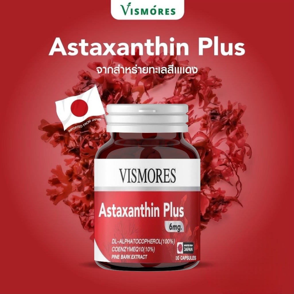 2 กระปุก Vismores Astaxanthin 6 mg Plus CoQ10 30 Capsule l แอสตาแซนติน จากสาหร่ายสีแดง นำเข้าจากญี่ปุ่น