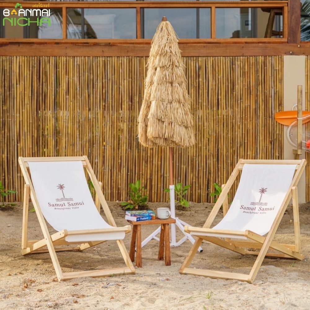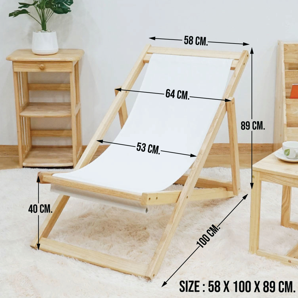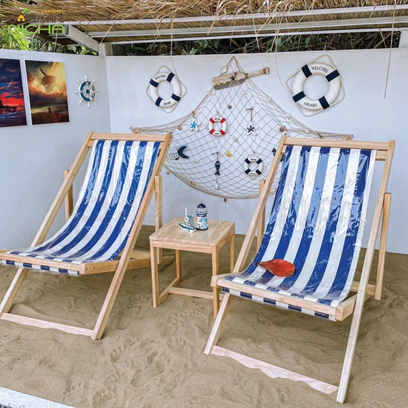 เก้าอี้ชายหาด เตียงชายหาด ไม้ยางพารา เกรดพรีเมี่ยม (ซื้อ 2 ตัวแถมโต๊ะ) Size: 64x100x89 .Baanmainicha