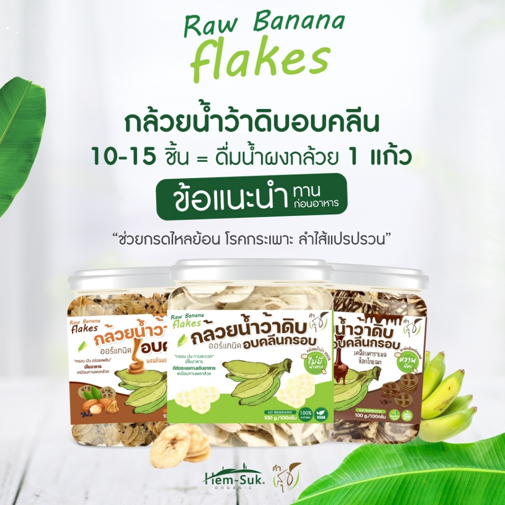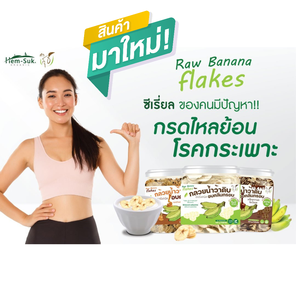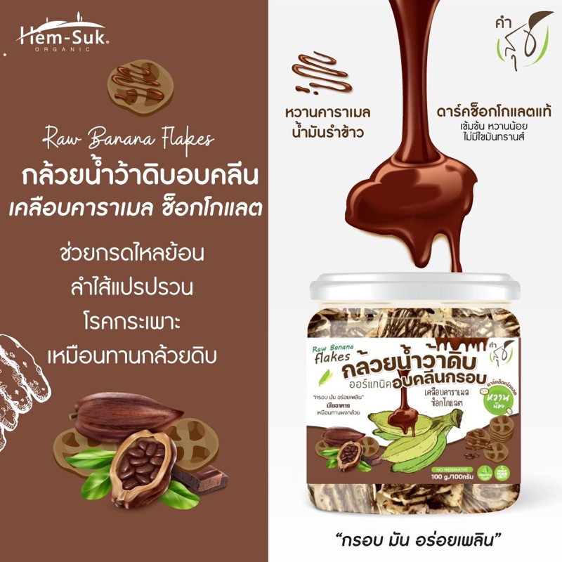 Raw Banana flakes (สูตรเคลือบคาราเมลช็อกโกเลต ) ซีเรียลสำหรับคนมีปัญหาระบบทางเดินอาหาร กรดไหลย้อน โรคกระเพาะ ลำไส้อัก