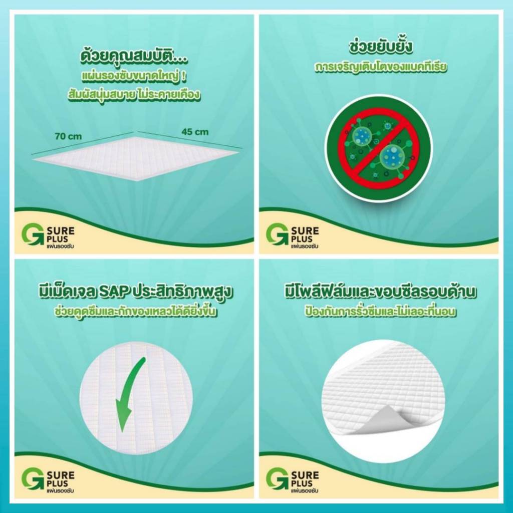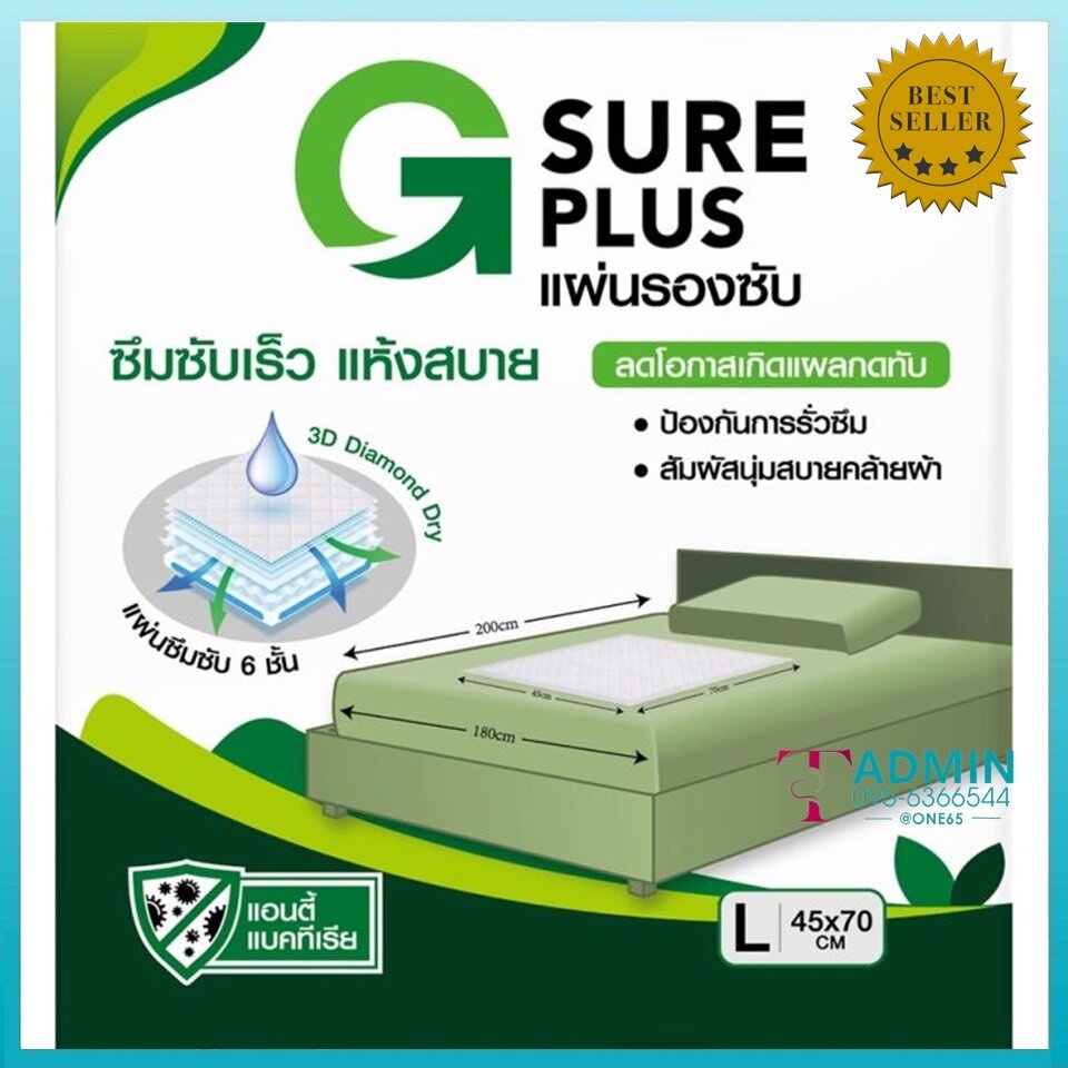 ยกลัง! G SURE PLUS แผ่นรองซับ 1 ลัง 12 แพ็ค - สีขาว ซึมซับเร็ว แห้งสบาย ลดโอกาสเกิดแผลกดทับ