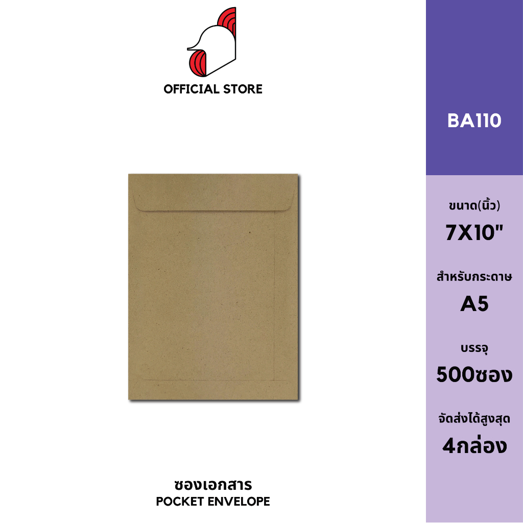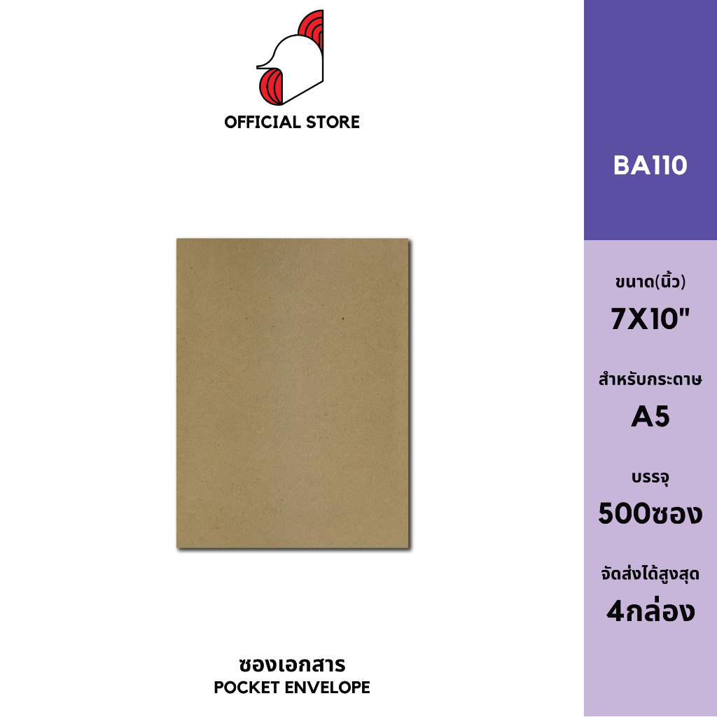 [SRC]ซองเอกสาร 7x10"(BA110)(แพ็ค 500) สีน้ำตาล แบบไม่จ่าหน้า