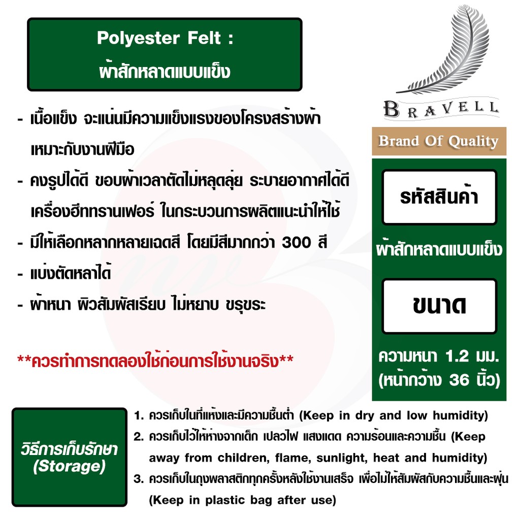 ผ้าสักหลาด แบบแข็ง (แบ่งตัดหลา ขนาด 91x91cm.) หน้าผ้า 36 นิ้ว สักหลาด Polyester Felt